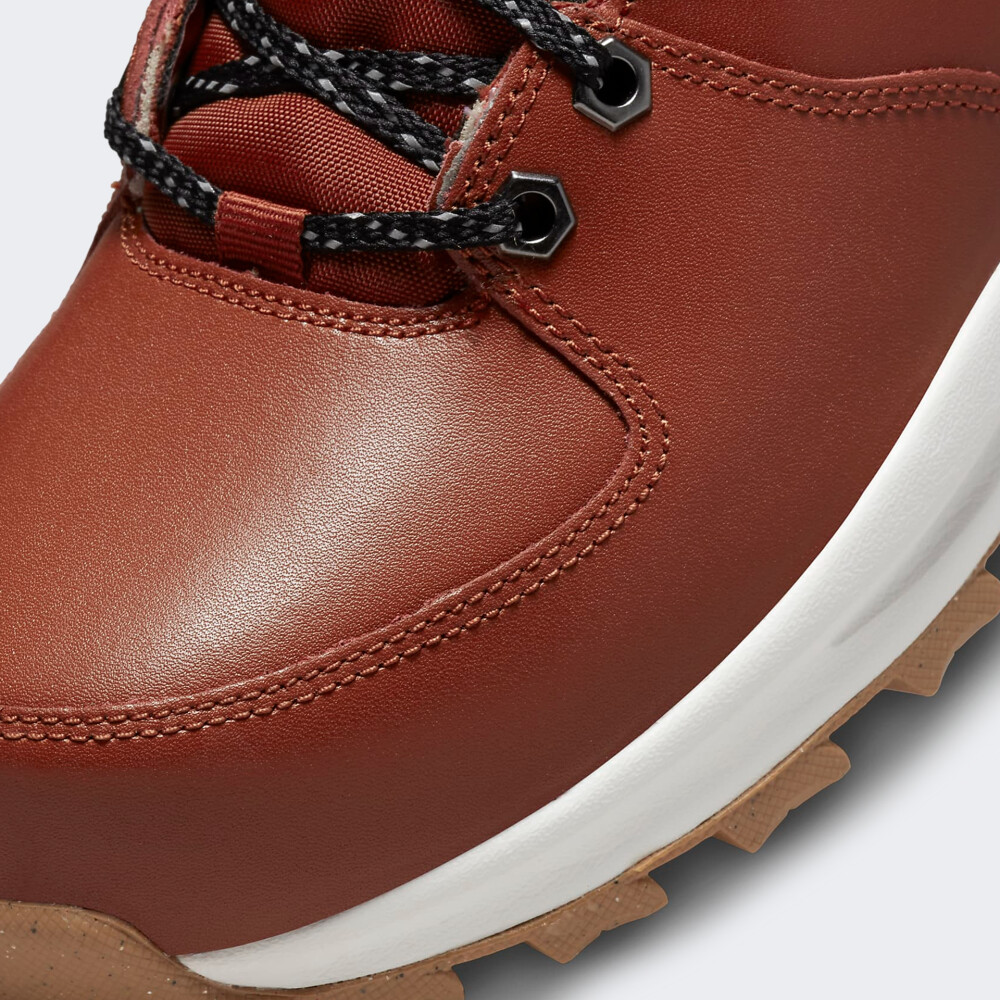 Черевики Nike Manoa Leather Se дозволять Вам впевнено крокувати у справах, або прогулюватись містом під час прохолодної погоди. Їх верх виготовлено з міцної шкіри та додаткових накладок, що гарантуватиме легкість у догляді та комфортні відчуття протягом усього дня. М’який комір середньої висоти та зручна підкладка ніжно огортають стопу, а щільна шнурівка дозволить надійно зафіксувати черевики. Проміжна підошва з пінного матеріалу по всій довжині забезпечує легку амортизацію, а гумова підметка з великими виступами надає стійкості та зчеплення на різних поверхнях. Використання якісних матеріалів, шестикутних металевих вушок та міцної гумової підошви гарантує стійкість моделі до швидких ознак зношування. Черевики декоровані об'ємним невиразним логотипом, який елегантно доповнює дизайн.