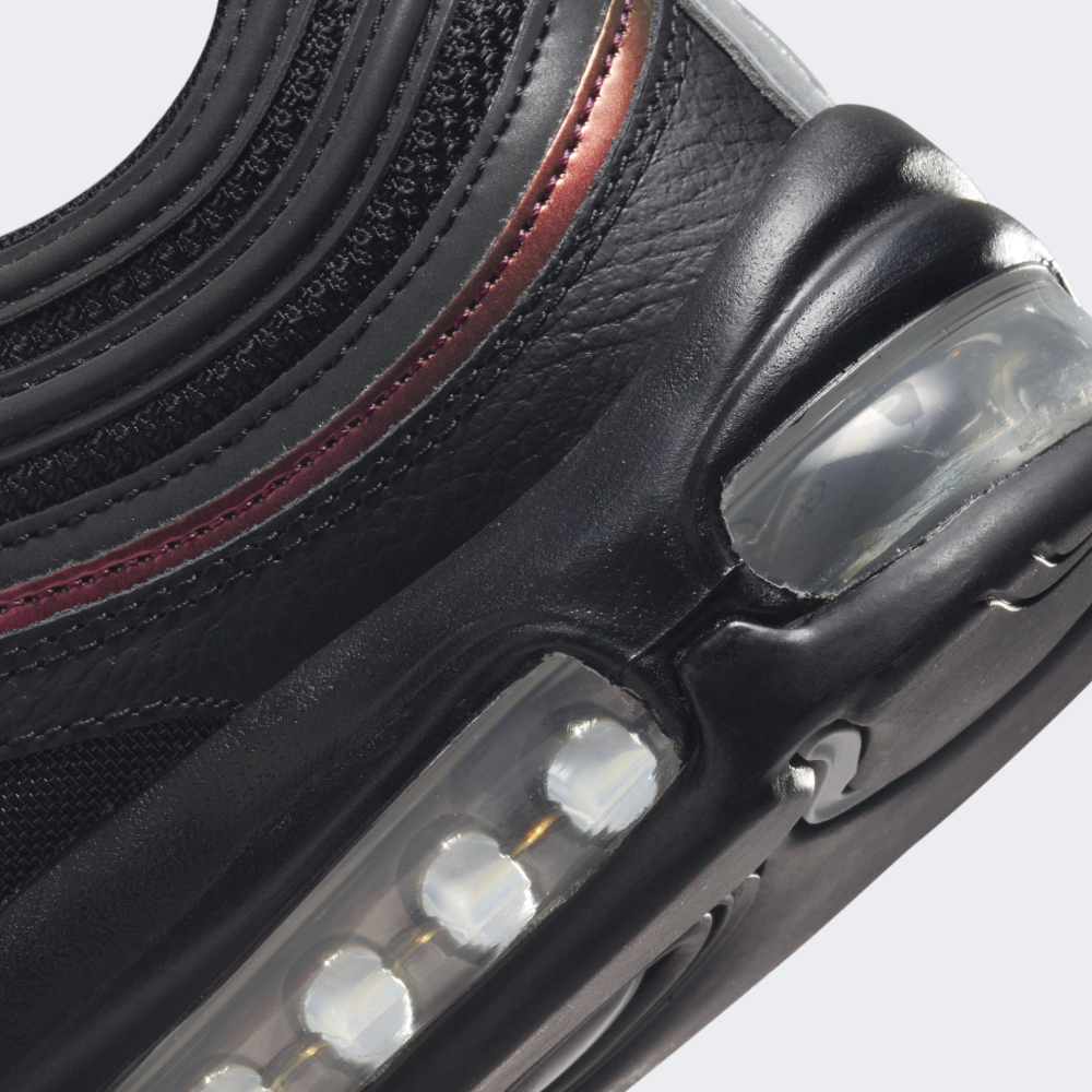 Кросівки Nike Air Max 97 були розроблені ще у 1997 році та були першими в історії кросівками з повітряною подушкою по всій площині підошви. Легендарна модель має неймовірний футуристичний дизайн у вигляді морських хвиль, що виглядає сучасно навіть сьогодні. Верх виготовлено з якісних матеріалів, які зберігають плавні лінії оригіналу, додаючи комфорту та довговічності. Система прихованої шнурівки створює обтічний вигляд. Блок Max Air на всю довжину забезпечує комфортну амортизацію під ногами. Гумова підметка гарантує відмінне зчеплення з поверхнями. Спочатку розроблені для бігу, кросівки стануть у пригоді в будь-якому місці й в будь-який час. Зручні, яскраві та стильні вони однозначно забезпечать гарний настрій на весь день.