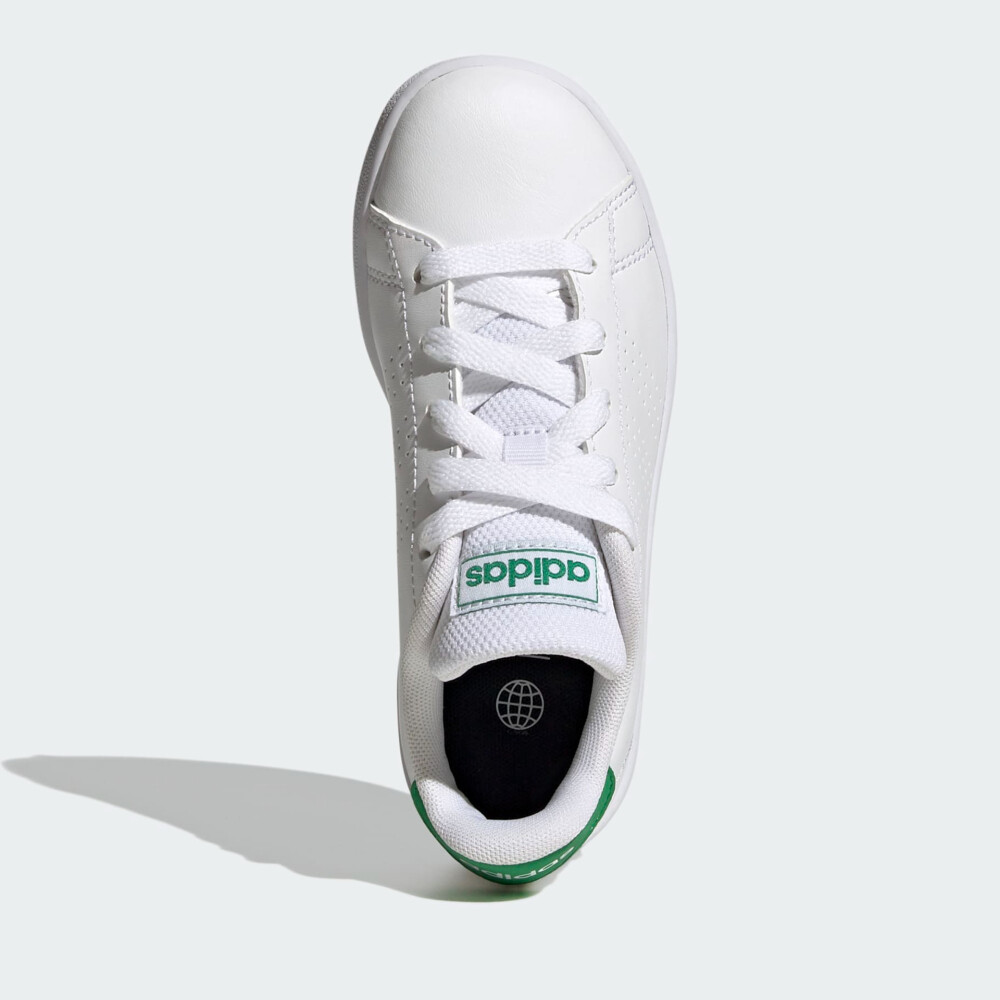 Колекція Adidas Sportswear змішує спорт і стиль, в ній новітні розробки поєднуються з естетичним зовнішнім виглядом, комфортом та універсальністю. Товари з даної колекції є ідеальним варіантом для повсякденного використання. Кеди Adidas Advantage K створені у ретро стилі тенісних моделей. Верх зі штучної шкіри поєднує міцність і м'якість, забезпечуючи зручну посадку на нозі. Проміжна підошва забезпечує амортизацію і легкість на кожному кроці, допомагає зменшити навантаження на стопу, забезпечуючи стійкість на різних поверхнях. Гумова підошва гарантує гарне зчеплення, що додає стабільності під час ходьби. Модель рекомендована для дітей віком від 8 до 16 років. Adidas піклується про зниження впливу на довкілля, тому матеріал верху кедів містить 50% перероблених волокон, що є лише одним з рішень, які допомагають покласти край пластиковим відходам.