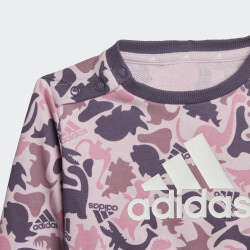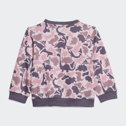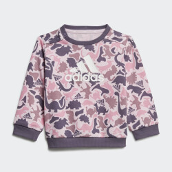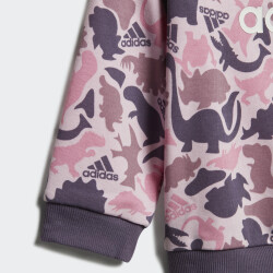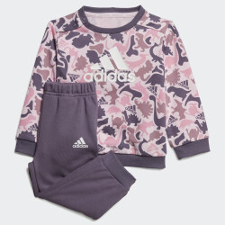 Колекція Adidas Sportswear змішує спорт і стиль, в ній новітні розробки поєднуються з естетичним зовнішнім виглядом, комфортом та універсальністю. Спортивний костюм Adidas I Aop Ft Jog створено для найменших прихильників бренду, які починають досліджують світ. Він виготовлений з якісного матеріалу, який є дуже м'яким та приємним до ніжної шкіри. Кофта створена з турботою про малюків, тому має застібки на плечах, щоб її було зручно одягати, а манжети покращать фіксацію. Стрічка з тканини, нашита на задню частину коміра, запобігатиме подразненню шкіри Вашого малюка. Штани мають зручний еластичний пояс та шнурок, що гарантує надійну посадку. Спортивний костюм декоровано стильними принтами з динозавриками, які створюють неймовірно милий образ. Модель рекомендована для дітей віком до 4 років. Adidas піклується про зниження впливу на довкілля, тому матеріал містить перероблені волокна.
