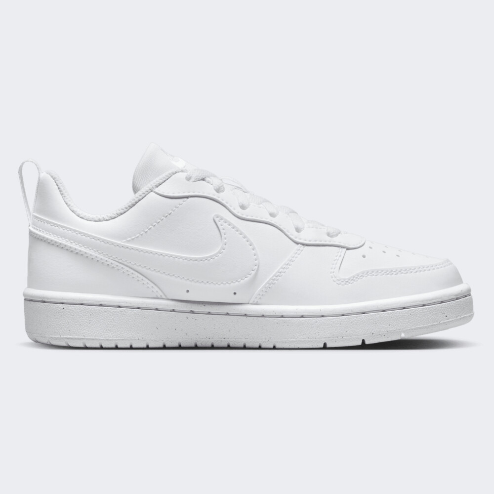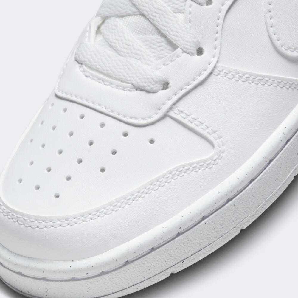 Кеди Nike Court Borough Low Recraft Bg — це поєднання баскетбольного дизайну 80-х та сучасного комфорту, яке ідеально пасуватиме до повсякденного гардероба юних модників. Вони стали втіленням класики, яка не втрачає своєї актуальності й завжди залишатиметься у тренді. Верх із синтетичної шкіри доповнений перфорованими отворами, що забезпечуватиме не лише міцність, але й ідеальний мікроклімат для ніг, навіть під час активного дня. Матеріал легкий у догляді й має високу стійкість до зношування, тому кеди збережуть свій вигляд навіть після численних пригод. Гумова підошва з гнучкими канавками створюватиме природний перекат стопи, додаючи плавності кожному кроку. Нековзна поверхня забезпечуватиме відмінне зчеплення з поверхнями та не залишатиме слідів на підлозі. Кеди декоровані логотипом Nike та стануть улюбленим взуттям юного покоління для щоденних пригод. Модель рекомендована для дітей віком від 7 до 15 років. Nike піклується про зниження впливу на довкілля, тому товар виготовлено по програмі Move to Zero, яка спрямована до нульового викиду вуглецю та нульових відходів.