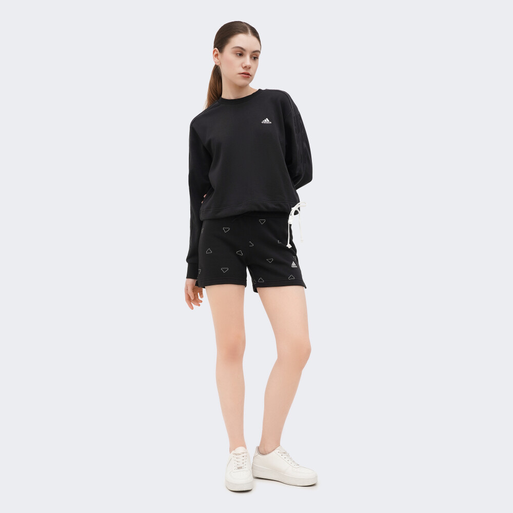 Колекція Adidas Sportswear змішує спорт і стиль, в ній новітні розробки поєднуються з естетичним зовнішнім виглядом, комфортом та універсальністю. Товари колекції є ідеальним варіантом для тих, хто хоче мати гарний вигляд та почуватись вільно. Шорти Adidas W Mng Ft Sho натхненні вінтажним стилем, проте дозволять створювати неймовірні повсякденні образи. Вони виготовлені з комбінованої тканини, яка є м'якою на дотик та приємною до тіла. Приталений короткий крій з бічними розрізами не обмежуватиме Ваших рухів, а еластичний пояс з текстильним шнурком гарантуватиме надійну фіксацію на талії. Шорти декоровані суцільною графікою з логотипом, що демонструватиме Вашу прихильність до стилю бренду. Adidas піклується про зниження впливу на довкілля, тому матеріал виробу щонайменше на 50% є сумішшю перероблених і відновлюваних матеріалів.