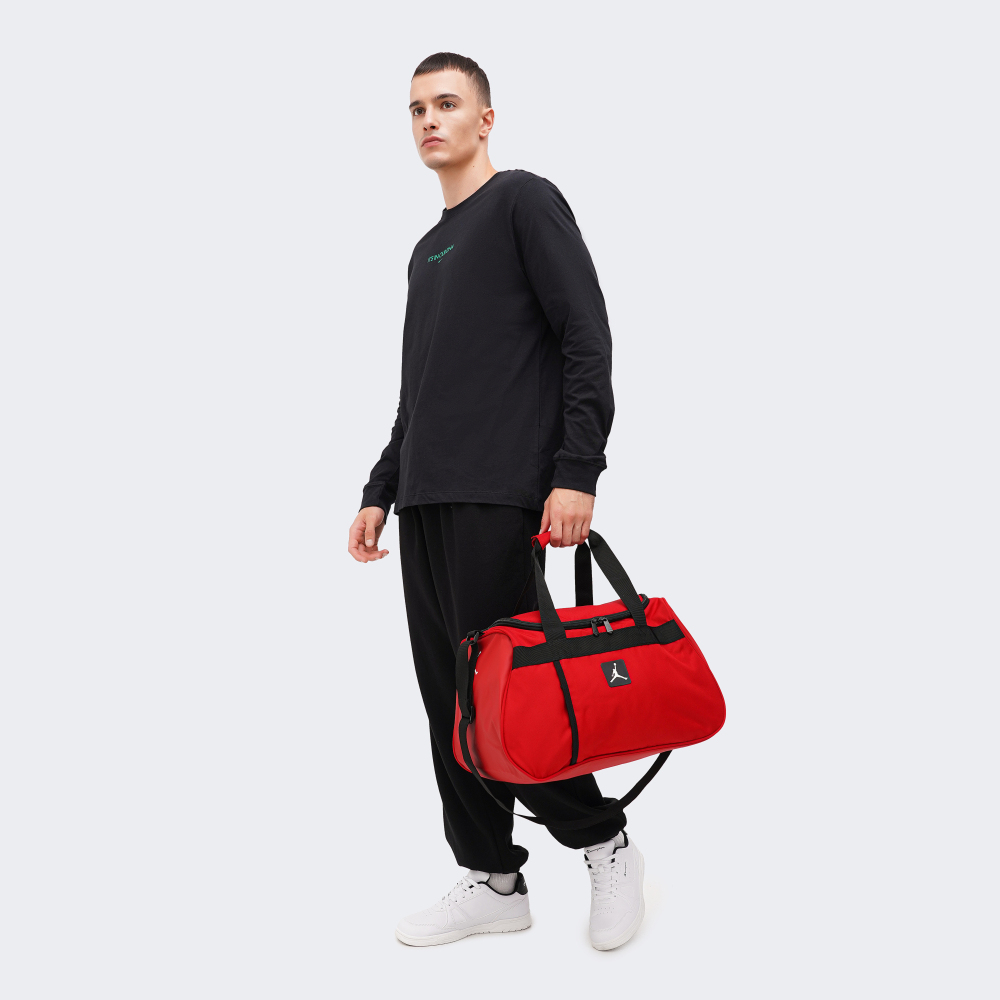 Відомий баскетболіст Майкл Джордан та легендарна компанія Nike створили всесвітньо відомий бренд Jordan, який досі має небувалу популярність. Вироби бренду асоціюється з успіхом та перемогами. Сумка Jordan Jam Essentials Duffle призначена для перенесення спортивного спорядження для Ваших тренувань. Вона виготовлена з якісного матеріалу, який є досить легким у догляді, оскільки забруднення достатньо протерти вологою тканиною. Одне відділення вмістить усі потрібні Вам речі, а прихована передня кишеня дозволить дрібні предмети завжди мати під рукою. Зручні ручки, які поєднуються липучкою, та регульований плечовий ремінь пропонують декілька варіантів комфортного перенесення. Сумка декорована невеликим логотипом, який підкреслюватиме Вашу прихильність до спортивного стилю Jordan.