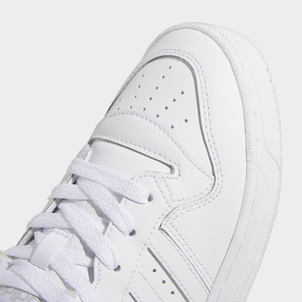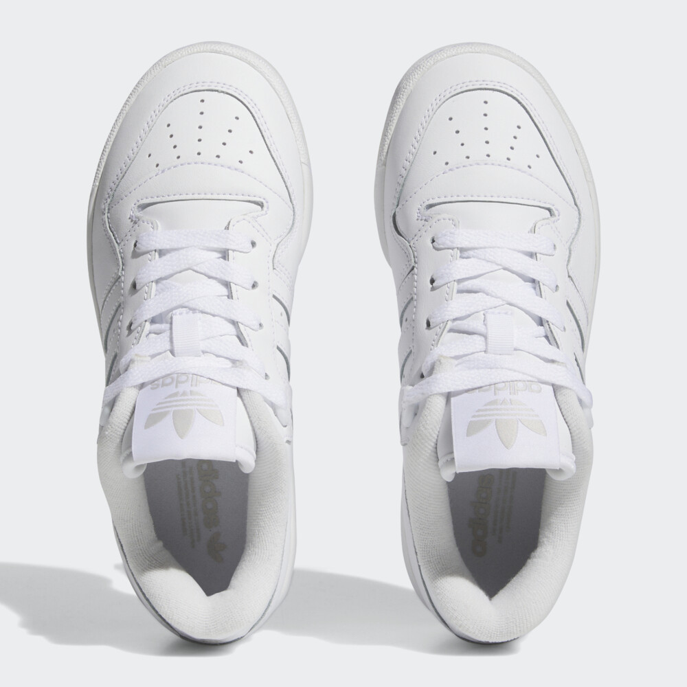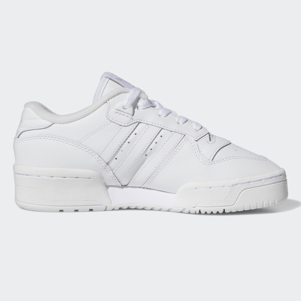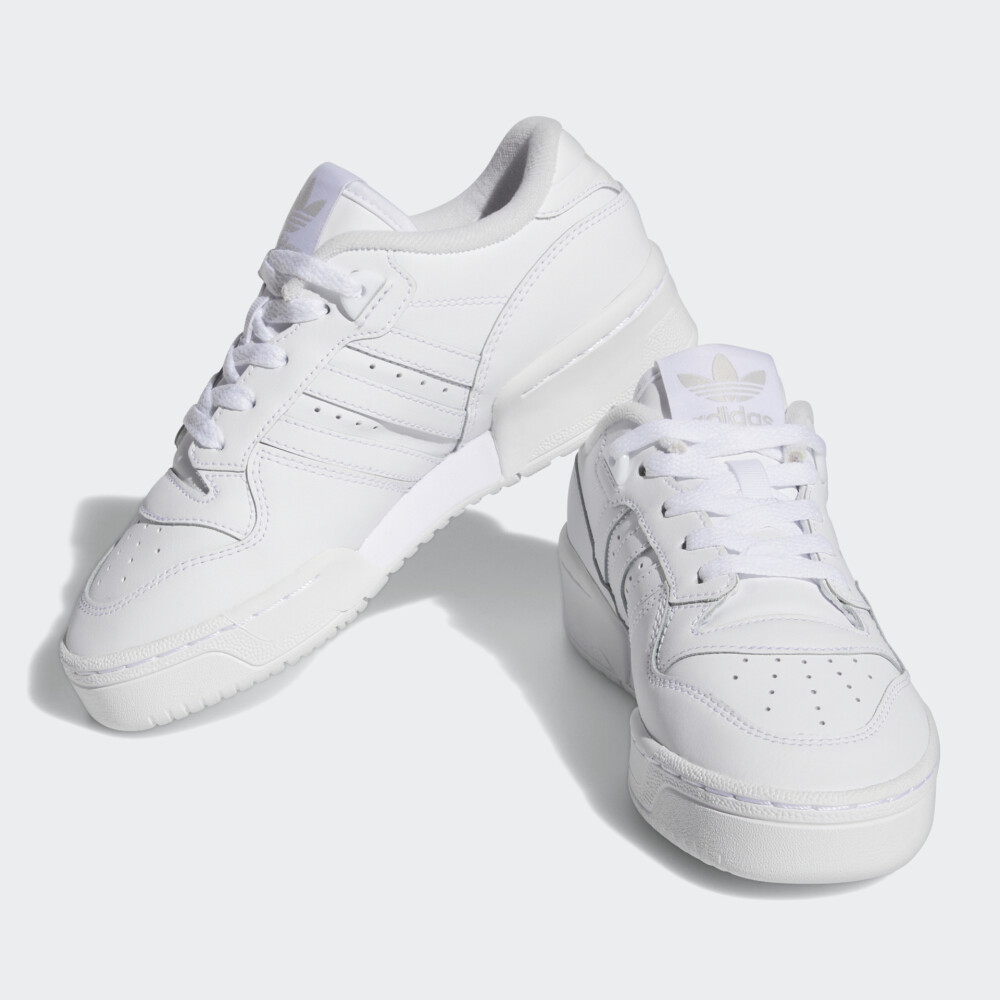 Колекція Adidas Originals заснована на використанні у виробництві найкращих матеріалів та практичних фасонів. Товари колекції створені для сміливих, впевнених у собі, та тих хто цінує максимальний комфорт у повсякденному житті. Кеди Adidas Originals Rivalry Low J у своєму дизайні поєднують ретро-естетику зі зручністю та практичністю, яка орієнтована на активних дітей. Їх верх виготовлено зі шкіри з поліуретановим покриттям, тому є досить стійким до швидкого зношування, а у поєднанні з перфорованими отворами та підкладкою з футера гарантуватиме комфортні відчуття протягом усього дня. Класична система шнурівки надаватиме підтримки, зберігаючи при цьому оригінальний стиль Adidas. Проміжна підошва забезпечуватиме м'яку амортизацію, яка потрібна для дитячих ніг під час активних ігор чи прогулянок. Гумова підметка сприятиме зчепленню з поверхнями. Кеди декоровані легендарними трьома смужками та логотипом, що підкреслюватиме їх спортивний стиль. Модель рекомендована для дітей віком від 8 до 16 років.