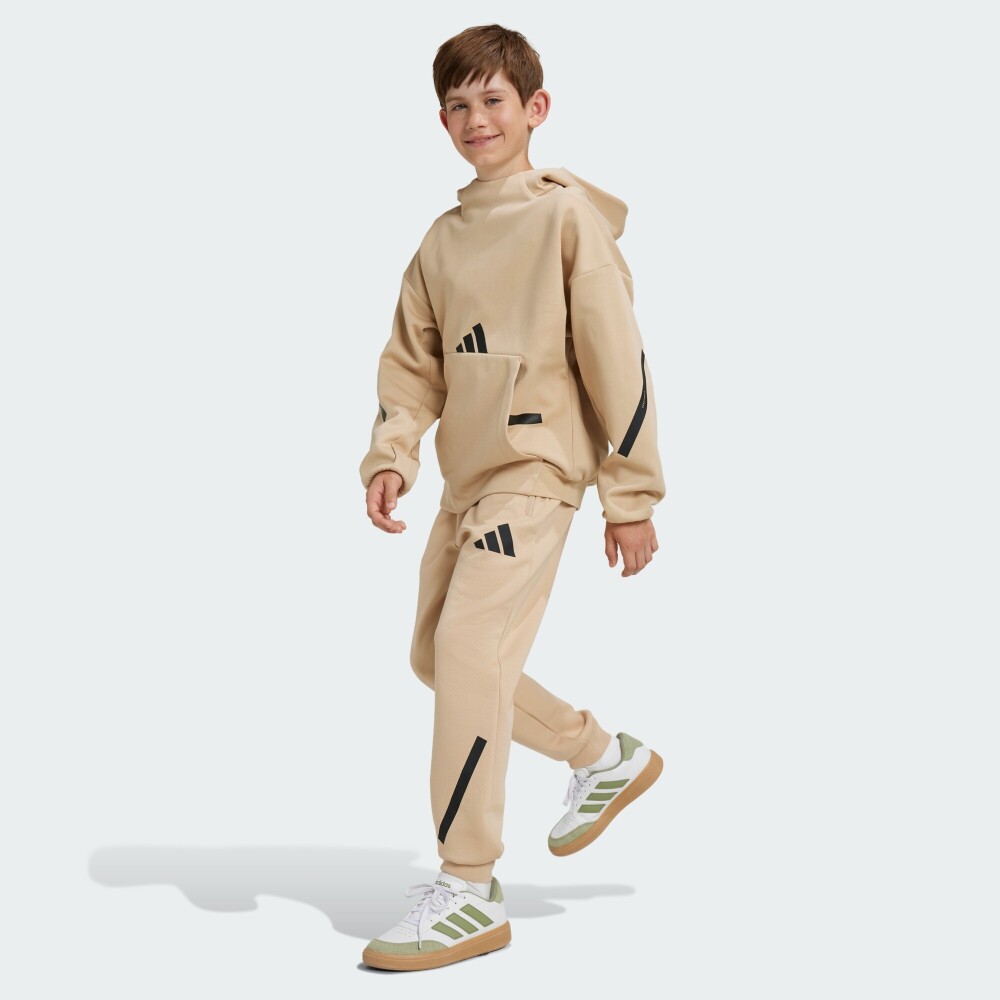 Колекція Adidas Sportswear змішує спорт і стиль, в ній новітні розробки поєднуються з естетичним зовнішнім виглядом. Преміальна серія Z.N.E. натхненна справжнім моментом та дозволить з комфортом проживати навіть найактивніші дні. Спортивні штани Adidas J Z.N.E. Pt натхненні лініями ігрового поля, тому дозволятиме стильно підтримувати улюблену команду навіть у прохолодні дні. Вони виготовлені з тришарової тканини Primeknit, яка гарантуватиме комфортні відчуття протягом усього дня. Класичний крій з широкими манжетами знизу штанин та еластичним поясом із текстильним шнурком забезпечуватиме приємну посадку, не обмежуючи при цьому дитячих рухів. Бічні кишені на блискавках дозволять мати при собі цінні дрібнички, такі як ключі та гроші. Спортивні штани декоровані невеликим логотипом, який додаватиме спортивної естетики в образи юного прихильника бренду. Модель рекомендована для дітей віком від 8 до 16 років. Adidas піклується про зниження впливу на довкілля, тому матеріал виробу щонайменше на 70% складається з переробленого та відновлюваного вмісту.