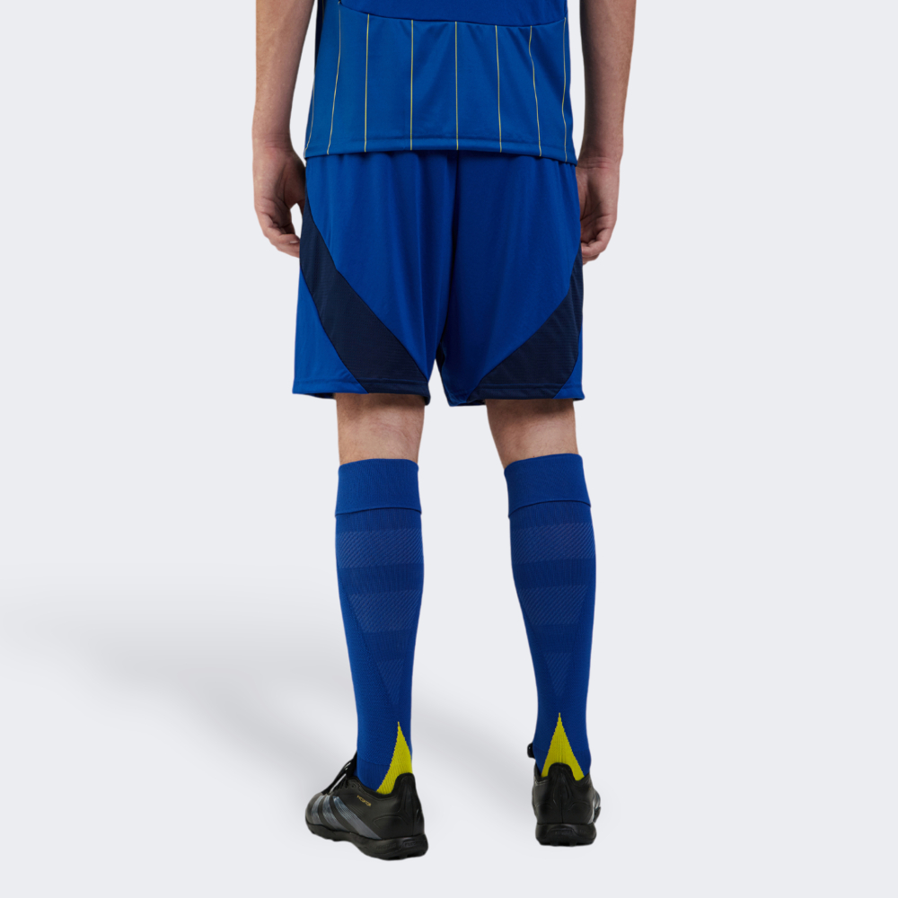 Adidas та Українська асоціація футболу (УАФ) оголосили про початок співпраці, представивши нові комплекти домашньої та виїзної форми збірних України на сезон 2024/2025. Форма вшановує зв’язок між українською культурою та футболом, що робить її важливим атрибутом кожного вболівальника. Шорти Adidas cuLIC24 Sho відтворюють дизайн виїзної форми збірної України, тому дозволять Вам відчути себе частиною великого футболу. Вони виготовлені з легкої тканини, яка відводитиме піт та зайву вологу від тіла, що у поєднанні з сітчастими вставками гарантуватиме відчуття сухості та комфорту незалежно від навантажень. Класичний крій оптимальної довжини надаватиме повний діапазон рухів, дозволяючи Вам з легкістю долати нові виклики. Еластичний пояс забезпечуватиме надійну фіксацію на талії, щоб Ви могли зосередитись на своїх досягненнях. Шорти декоровані логотипом Adidas і емблемою УАФ, що надаватиме їм особливого зв'язку з професійним футболом. Adidas піклується про зниження впливу на довкілля, тому виріб виготовлено зі 100% перероблених матеріалів.