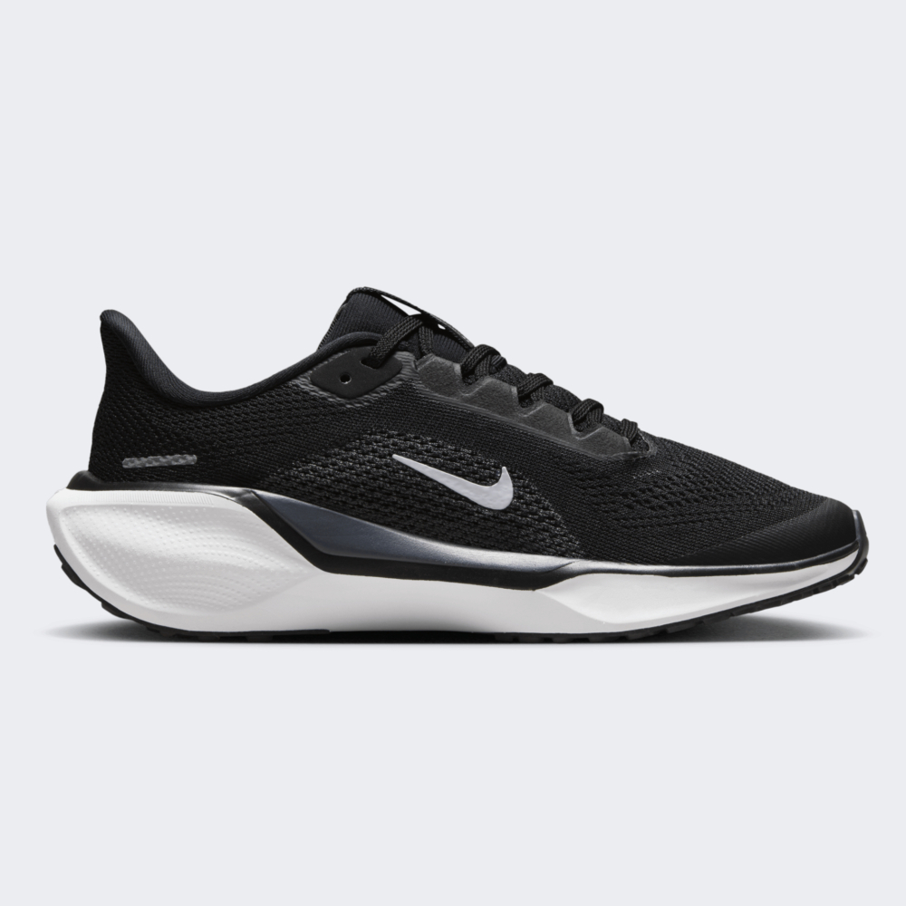 Кросівки Nike Air Zoom Pegasus 41 — ідеальний вибір для юних спортсменів, які прагнуть швидкості та надійної підтримки під час бігу. Їхній верх з інженерної сітки сприятиме чудовій вентиляції, тому дозволятиме ногам залишатися прохолодними протягом усього маршруту. Легка, але міцна конструкція забезпечуватиме надійну підтримку стопи, допомагаючи уникнути втоми на довгих дистанціях. Система шнурівки гарантуватиме щільну та зручну фіксацію, що запобігатиме ковзанню ноги всередині взуття. Проміжна підошва у поєднанні з технологією Zoom Air поглинатиме ударні навантаження та додаватиме відчуття пружності, роблячи кожен крок м’якшим і динамічнішим. Розширена зона п’яти оптимізуватиме простір для приземлення, що робитиме біг більш плавним і природним. Гумова підметка зі спеціальним малюнком протектора надаватиме відмінне зчеплення з поверхнями, що дозволятиме зберігати баланс та контроль під час руху. Лаконічний і сучасний дизайн представлений у стильному чорному кольорі з елегантними білими акцентами. Світловідбивні елементи підвищуватимуть видимість у темний час доби, забезпечуючи безпечні пробіжки навіть у вечірній час. Модель рекомендована для дітей віком від 7 до 15 років. Nike піклується про зниження впливу на довкілля, тому товар виготовлено по програмі Move to Zero, яка спрямована до нульового викиду вуглецю та нульових відходів.
