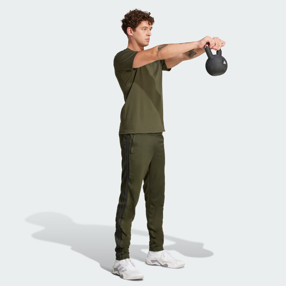 Колекція Adidas Performance зосереджена на створенні високоякісного спортивного одягу та взуття, призначених для досягнення максимальних результатів у спорті. Спортивні штани Adidas Tr-Es Base 3pt дозволять Вам не зупинятись на досягнутому та впевнено йти до поставлених цілей навіть у прохолодну погоду. Вони виготовлені зі щільного трикотажу з технологією Aeroready, тому ефективно відводитимуть вологу та підтримуватимуть відчуття свіжості та комфорту навіть під час інтенсивних навантажень. Класичний звужений до низу крій приємно прилягатиме до тіла, при цьому не обмежуючи Ваших рухів. Еластичний пояс зі внутрішнім шнурком надаватиме відмінну фіксацію на талії, щоб Ви могли впевнено виконувати будь-які вправи. Штани мають бічні кишені на блискавках, що дозволятиме Вам безпечно зберігати при собі цінні дрібнички. Культові три смужки та невеликий логотип підкреслюватимуть Вашу відданість легендарному спортивному бренду. Adidas піклується про зниження впливу на довкілля, тому модель виготовлено з використанням перероблених матеріалів.