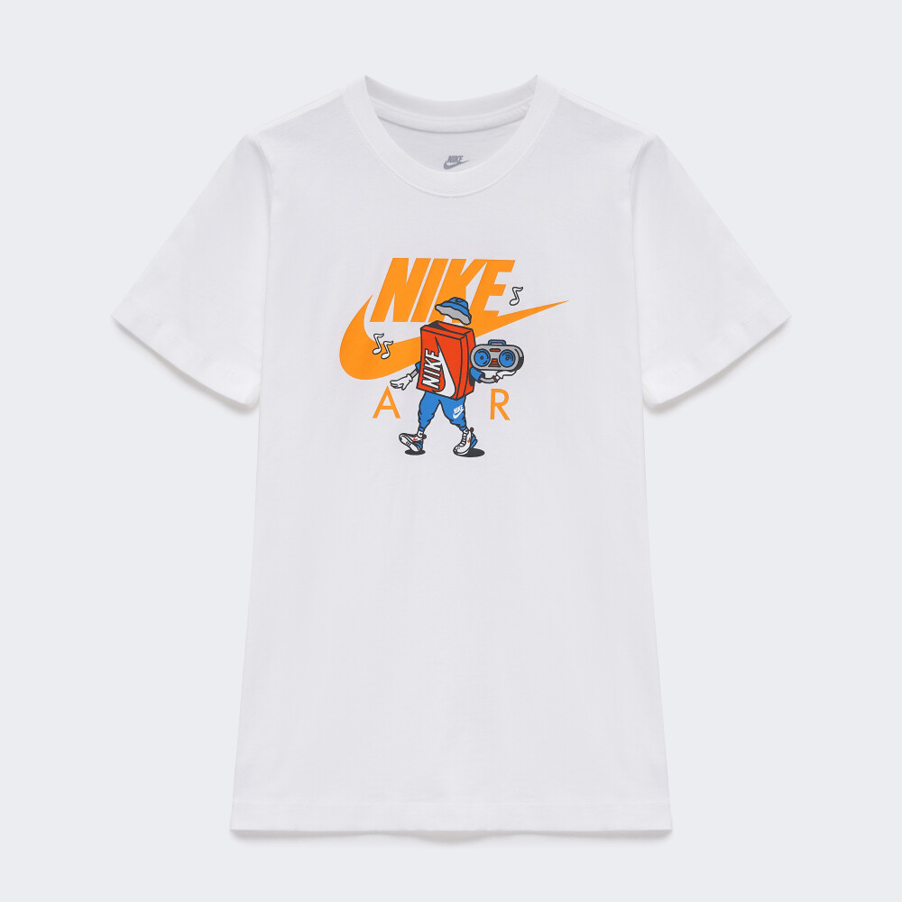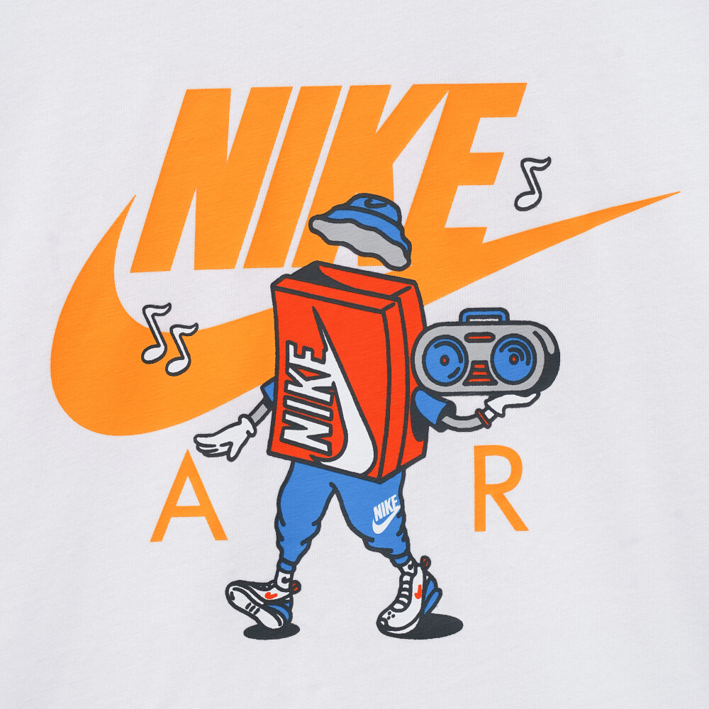 Футболка Nike K Nsw Tee Boxy 2 — це справжній вибух стилю, драйву та впевненості, створений для підлітків, які не уявляють свого життя без руху, музики і яскравих емоцій. Вона виготовлена з м’якої бавовняної тканини, тому дарує комфорт навіть у найдинамічніші дні — на шкільному подвір’ї, у парку чи на вечірці з друзями. Класичний крій не обмежує рухів, дозволяючи вільно танцювати, бігати чи грати без обмежень. Круглий виріз із м’якою внутрішньою стрічкою дбайливо захищає шкіру від подразнень, навіть якщо день починається з пригод і триває до заходу сонця. Футболка декорована яскравим принтом із кумедним мультяшним героєм, який несе в руках вінтажний бумбокс. Він ніби запрошує увімкнути улюблений трек на повну та рухатись у ритмі хіп-хопу — сміливо, голосно, з настроєм. Модель рекомендована для дітей віком від 7 до 15 років, які люблять виділятися, мріяти та щодня відкривати світ по-новому.