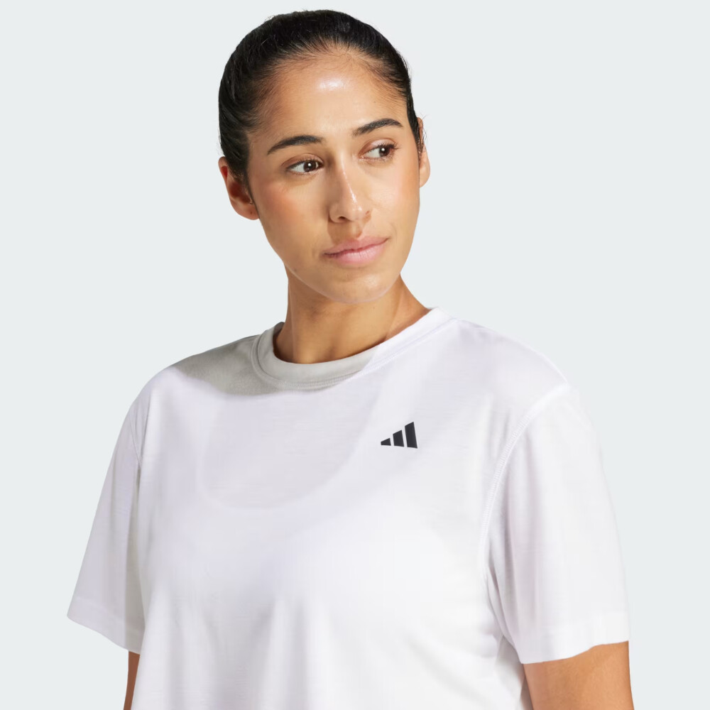 Футболка Adidas Te Min Tee — це Ваша ідеальна напарниця для активних тренувань і впевнених кроків до нових досягнень. Вона створена для того, щоб Ви могли зосередитися лише на русі, не відволікаючись на дискомфорт чи перегрів. Модель виготовлена з легкої, функціональної тканини, яка завдяки технології ClimaCool ефективно відводить вологу й забезпечує відчуття свіжості навіть під час найінтенсивніших вправ — від кардіо до силових тренувань. Вільний трохи укорочений крій із розслабленими спущеними плечима формує сучасний, динамічний силует, не обмежуючи жодного Вашого руху. Такий дизайн дозволяє почуватися вільно й впевнено, навіть під час швидких змін позицій у HIIT-програмах чи підйомів ваги. Класична кругла горловина з м’якою внутрішньою стрічкою захищає шкіру від натирання, тож Ви зможете зосередитись на головному — русі, диханні та силі. Акуратний логотип Adidas делікатно доповнює образ, додаючи легкої впізнаваності та відданості стилю бренду.