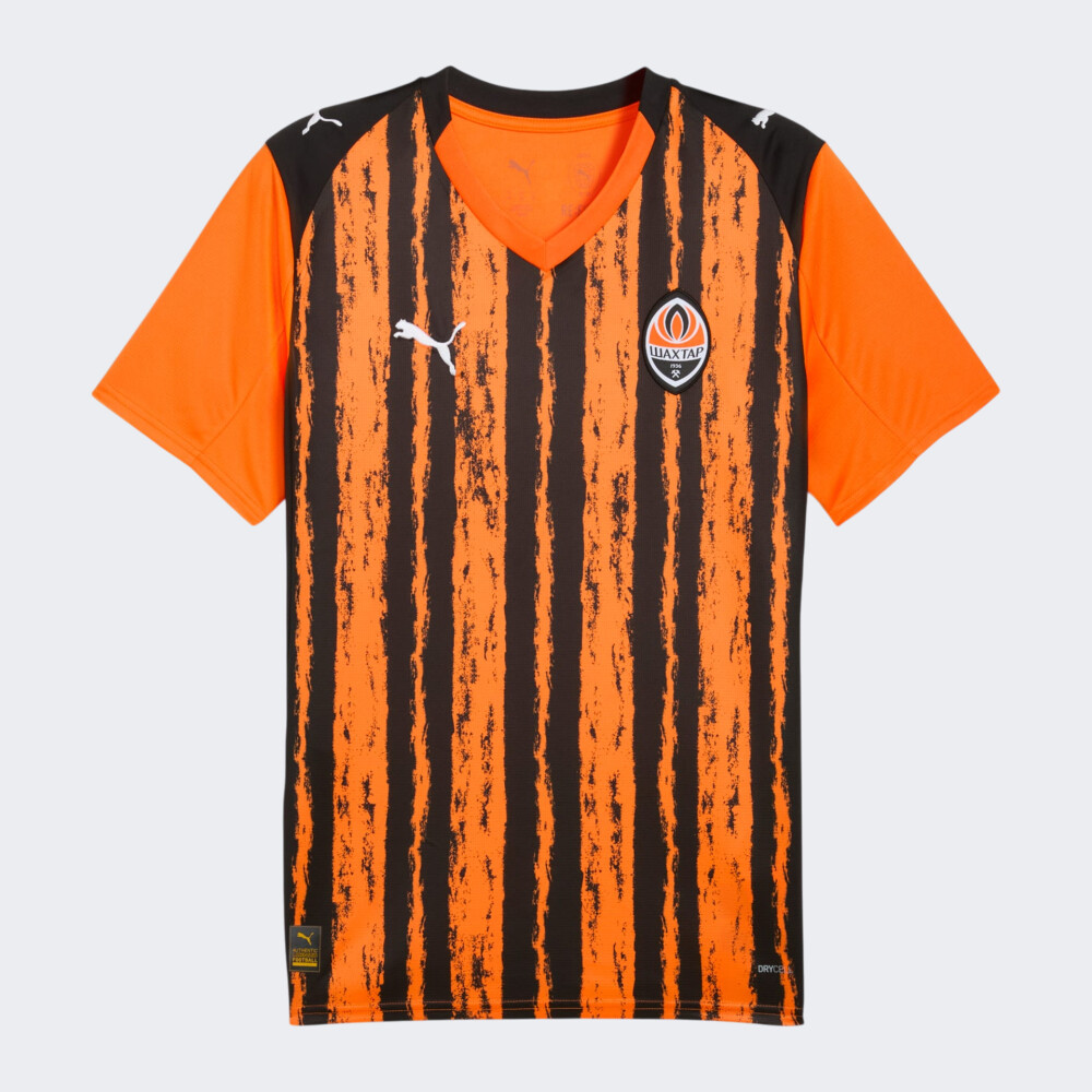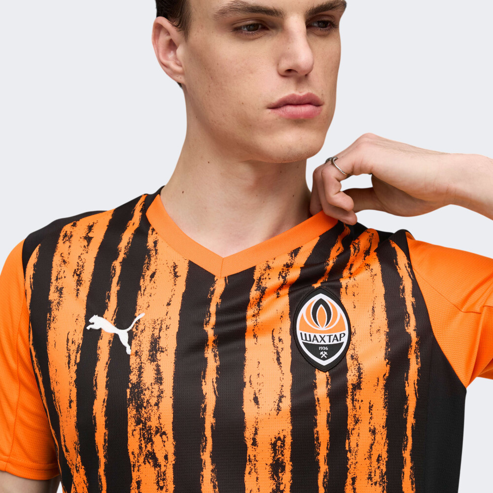 Бренд Puma, у межах глобальної стратегії розвитку футболу, підписала контракт із ФК «Шахтар» — клубом з великим серцем, легендарною історією та мрією, яка палає з кожною грою. 15-разовий чемпіон України, володар Кубків і Суперкубків, «Шахтар» — це не просто команда, це сила, яка надихає. Покажіть свою відданість легендарній команді разом з офіційною екіпіровкою. Футболка Puma FCSD Home Jersey Replica w/o Sponsor створена за зразком офіційної домашньої форми легендарного «Шахтаря» — команди, у серці якої палає пристрасть до гри, а кожен матч стає продовженням великої історії. Легка технологічна тканина з функцією відведення вологи забезпечує відчуття сухості та комфорту навіть у найгарячіші моменти матчу. Класичний крій дарує повну свободу рухів, дозволяючи демонструвати максимальну швидкість та реакцію без жодних обмежень. Горловина зі спеціальною внутрішньою стрічкою зменшує тертя та забезпечує додатковий комфорт під час гри або тренувань. Фірмове поєднання помаранчевого та чорного кольорів уособлює енергію, характер та незламність клубу, а офіційний логотип ФК «Шахтар» — це знак Вашої відданості команді. Puma піклується про зниження впливу на довкілля, тому модель виготовлена з використанням перероблених матеріалів.