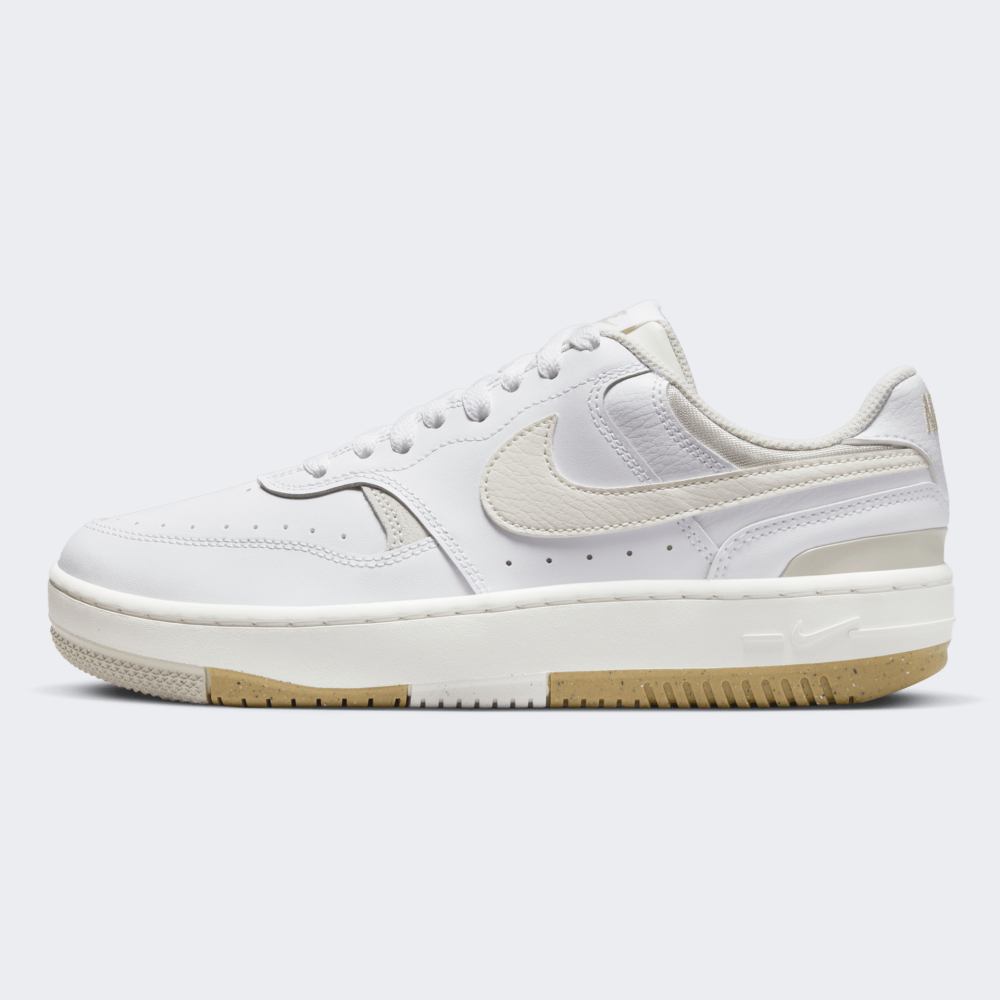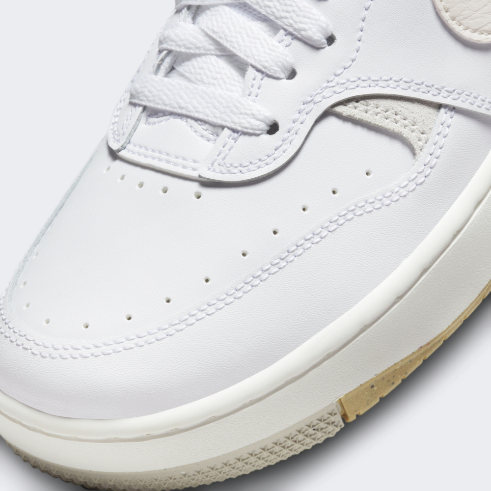 Модель Nike Air Force вперше з’явилась у продажу ще у 1982 році. Зовнішній вигляд з часом зазнавав незначних змін, що зробило їх світовим стандартом вуличної культури та породило концепцію «ретро». Кеди Nike Gamma Force - оновлена версія культової моделі, створена для тих, хто цінує комфорт та стильний вигляд. Їх верх виготовлено з комбінування натуральної та синтетичної шкіри, що надає взуттю стійкості та відчуття природності, а перфоровані отвори у передній частині взуття сприяють циркуляції повітря. Проміжна підошва поглинатиме ударні навантаження, а гумова підошва Grind забезпечуватиме надійне зчеплення з поверхнями. Вінтажний баскетбольний дизайн кедів доповнено логотипом. Nike піклується про зниження впливу на довкілля, тому крапчаста гумова підошва Grind містить щонайменше 5% перероблених матеріалів.