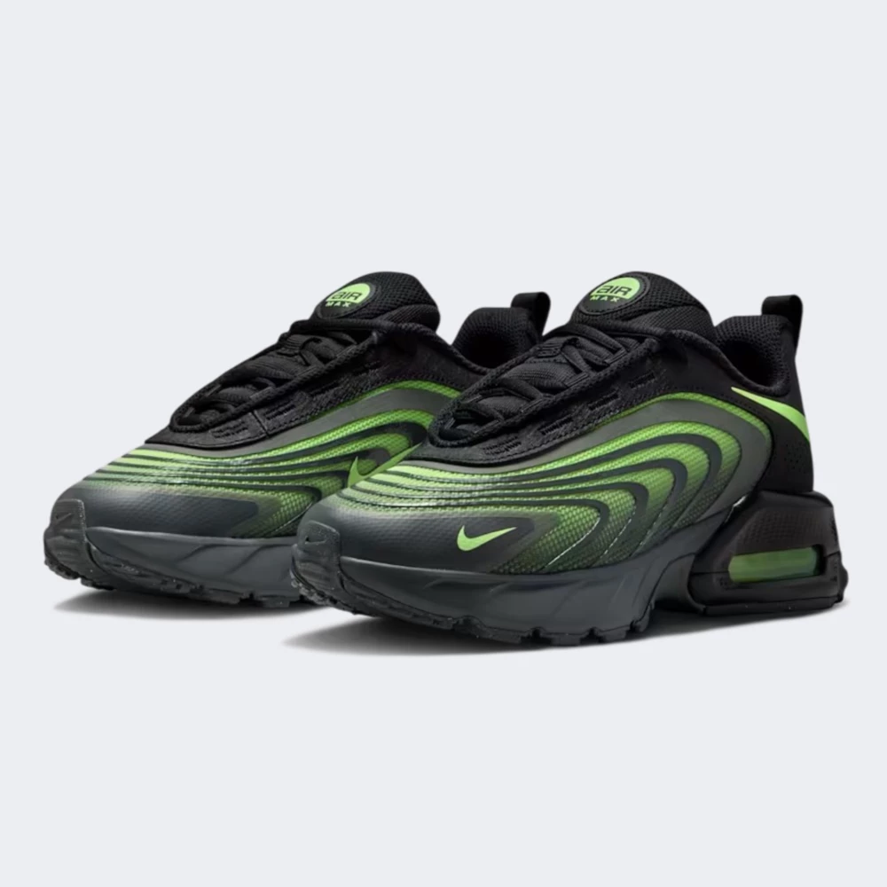 Nike AIR MAX FIRE GS — лайфстайл-кросівки з упізнаваним характером лінійки Nike Air Max для щоденного комфорту і виразного стилю. Середина 80-х ознаменувала початок революції у світі взуття — саме тоді з’явилася легендарна серія Nike Air Max, яка змінила уявлення про стиль, інновації та комфорт. Кросівки Nike Air Max Fire Gs створені під впливом польових видів спорту та цифрового світу, тому пропонують обтічний вигляд, створений для сучасних підлітків. Верх поєднує синтетичну шкіру та текстильні елементи, що підтримує вентиляцію та додає зносостійкості в ключових зонах. Класична шнурівка допомагає налаштувати надійну посадку, а м’яка устілка знижує втому під час активного дня. Підошва зі спіненого матеріалу працює разом із видимою подушкою Max Air у п’яті, що забезпечує амортизацію й захист від ударних навантажень. Зносостійка гумова підметка з рельєфним протектором додає зчеплення та довговічності. Чорна основа підкреслена хвилеподібними неоново-зеленими акцентами та контрастними Swoosh, а прозоро-зелена вставка Air додає фірмової естетики. Модель рекомендована для дітей віком від 7 до 15 років.