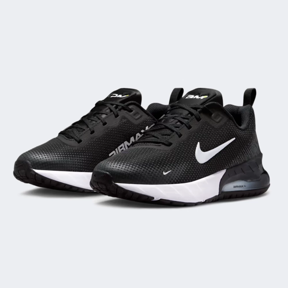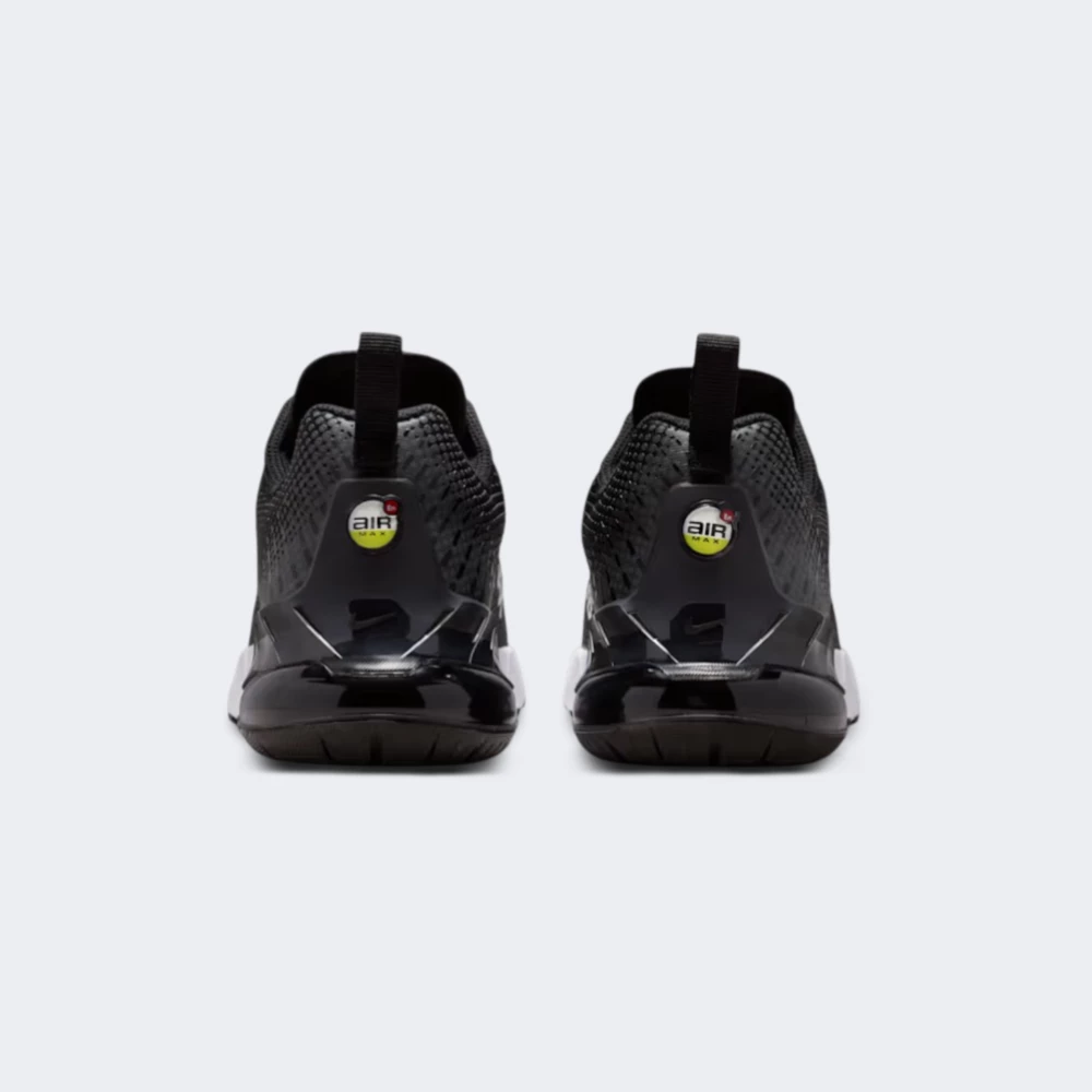 Nike AIR MAX PHOENIX BG кросівки з помітною п'ятковою повітряною камерою і асиметричною шнурівкою, верх виконаний зі синтетичних панелей і сітки з підсилювальними накладками в зонах зносу, м'який комір і петелька на п'яті для зручного взування, язичок щільно лягає на підйом, декоративні написи AIRMAX і контрастні Swoosh на бічній панелі і носку, проміжна підошва зі спіненого матеріалу з білою фронтальною секцією, підметка зносостійка гумова чорного кольору з рельєфним протектором, кольори чорний білий темно-сірий, матеріали синтетика сітка текстиль, сезонність літо демісезон