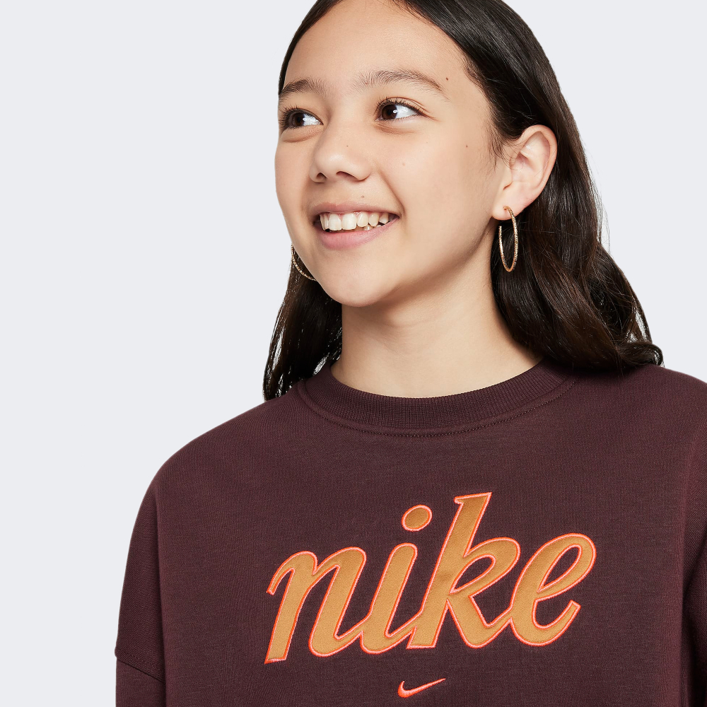 Кофта Nike G Nsw Club Flc Bxy Crw Gx Star вирізняється стриманим дизайном, який легко впишеться у гардероб юної модниці, додаючи в її образи нотки спортивної впевненості. Вона виготовлена з флісової тканини, яка даруватиме відчуття затишку протягом усього дня у прохолодну погоду. Крій оверсайз зі спущеними плечовими швами та просторими рукавами дозволятиме рухатись без будь-яких обмежень. Трикотажні манжети на рукавах та по низу кофти покращуватимуть фіксацію, запобігаючи втратам тепла. Кругла горловина та стрічка з тканини, нашита на задню частину коміра, запобігатимуть подразненню шкіри. Кофта декорована великим логотипом Nike, який стане стильним акцентом, підкреслюючи любов юної модниці до легендарного бренду та його переможної енергетики. Модель рекомендована для дітей віком від 7 до 15 років.