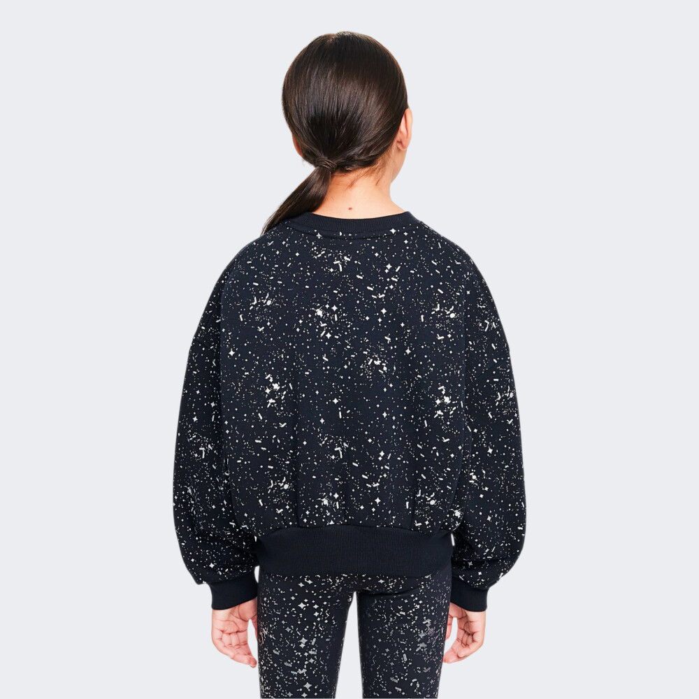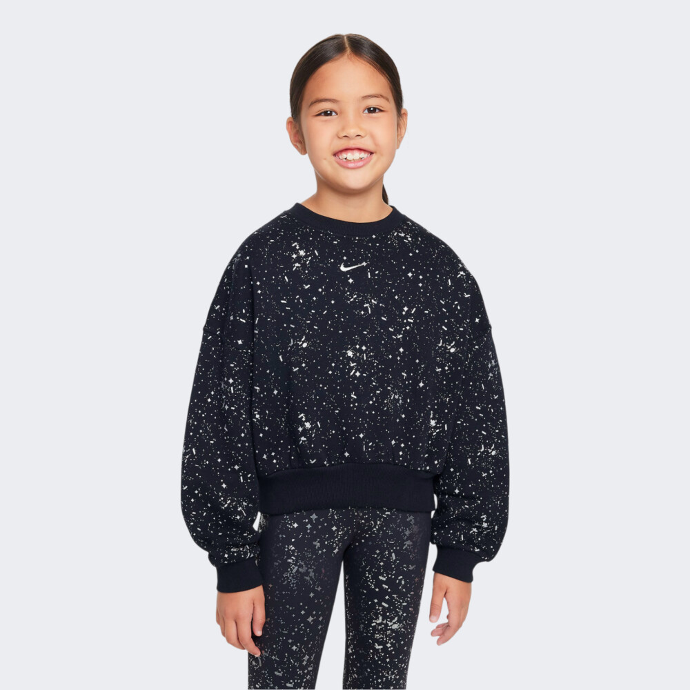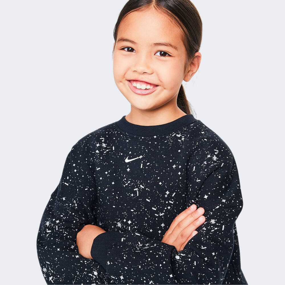 Колекція Nike Club об'єднує стиль і практичність, пропонуючи різноманітний одяг для відпочинку та активного способу життя. Кофта Nike G Nsw Club Flc Bxy Crw Shne додасть блиску нічного неба у повсякденні образи юної модниці. Вона виготовлена з флісової тканини, яка гарантуватиме відчуття затишку протягом усього дня. Вільний крій зі спущеними плечовими швами не сковуватиме дитячих рухів, дозволяючи насолоджуватися кожним моментом активного дня. Манжети на рукавах та по низу кофти покращуватимуть посадку, тому запобігатимуть втратам тепла. Кофта декорована суцільним принтом зоряного неба та невеликим логотипом, який підкреслюватиме відданість юної модниці стилю легендарного бренду Nike. Модель рекомендована для дітей віком від 7 до 15 років.