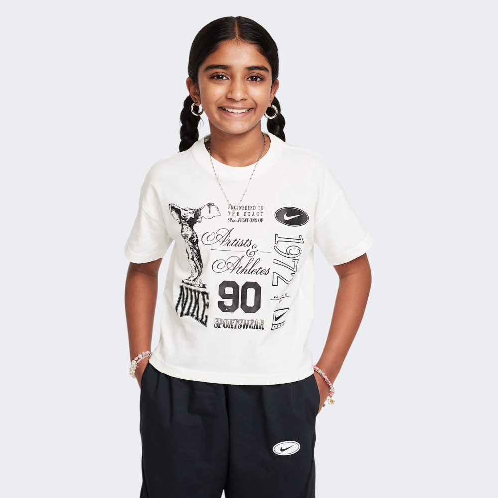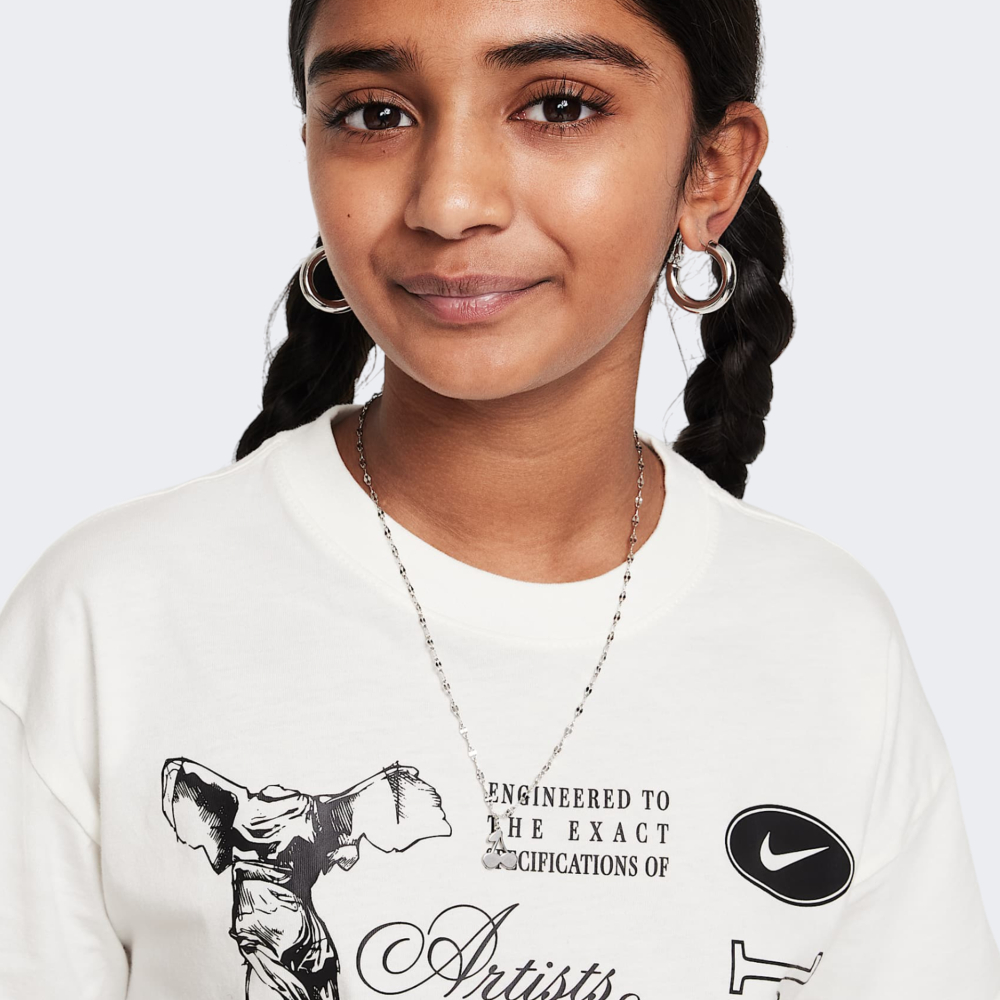 Футболка Nike G Nsw Tee Dance — це справжній вибух енергії, стилю та натхнення для дівчат, які не уявляють свого життя без руху, музики й самовираження. Вона виготовлена з м’якої, приємної до тіла бавовни, яка дбайливо огортає шкіру й забезпечує максимальний комфорт у будь-якій активності — чи то на танцмайданчику, на прогулянці з друзями, чи в шкільному дворику. Вільний крій зі спущеними плечовими швами не сковує рухів, дозволяючи дитині виражати себе через рух і бути собою в кожній миті. Круглий виріз горловини з м’якою внутрішньою вставкою турботливо захищає ніжну шкіру від подразнень, навіть якщо день перетвориться на марафон емоцій. Футболка прикрашена стильним графічним принтом із написами, що символічно об’єднують артистів і атлетів. Модель рекомендована для дівчат віком від 7 до 15 років, які цінують свободу, яскраві емоції та хочуть, щоб їхній стиль розповідав історію їхньої впевненості та руху вперед.