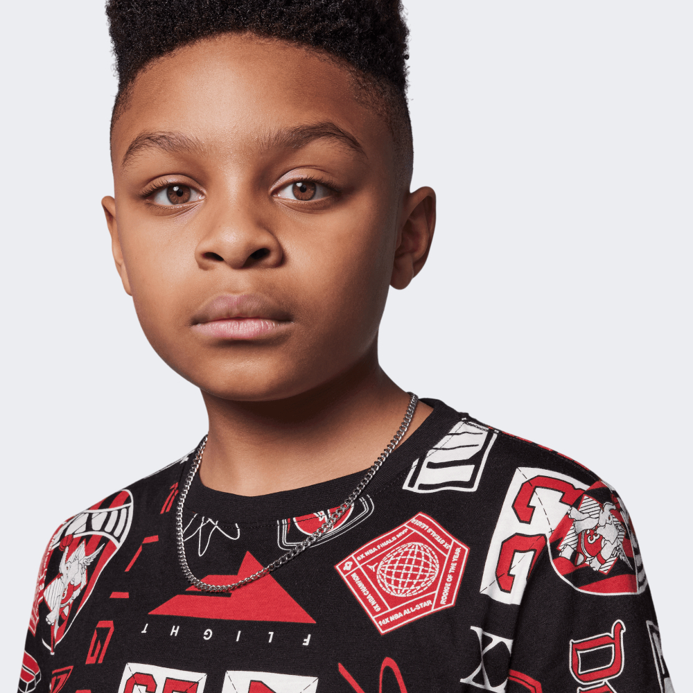 Майкл Джордан і легендарна компанія Nike об’єдналися, щоб створити культовий бренд Jordan, який символізує перемогу, стиль та бездоганну якість. Його продукція асоціюється з успіхом і впевненістю, а кожен виріб відображає дух чемпіона. Футболка Jordan Jdb Mj Ess Aop Ss Tee створена для юних баскетболістів, які прагнуть виділятись не лише на майданчику, а й у повсякденному житті. Виготовлена з м'якої натуральної бавовни, вона дарує відчуття комфорту на шкірі та забезпечує чудову вентиляцію навіть у найактивніші миті дня. Класичний крій додає легкості та свободи, дозволяючи рухатись без обмежень — від шкільних занять до веселих прогулянок із друзями. Класична кругла горловина у поєднанні зі спеціальною м'якою стрічкою на внутрішній стороні коміра м’яко оберігає ніжну шкіру від подразнень. Суцільний принт на футболці — це візуальна історія баскетболу, енергії, сили духу та легендарного шляху Майкла Джордана. Він надихає рухатись уперед, бути сміливими та завжди викладатись на повну. Модель рекомендована для дітей віком від 7 до 15 років.