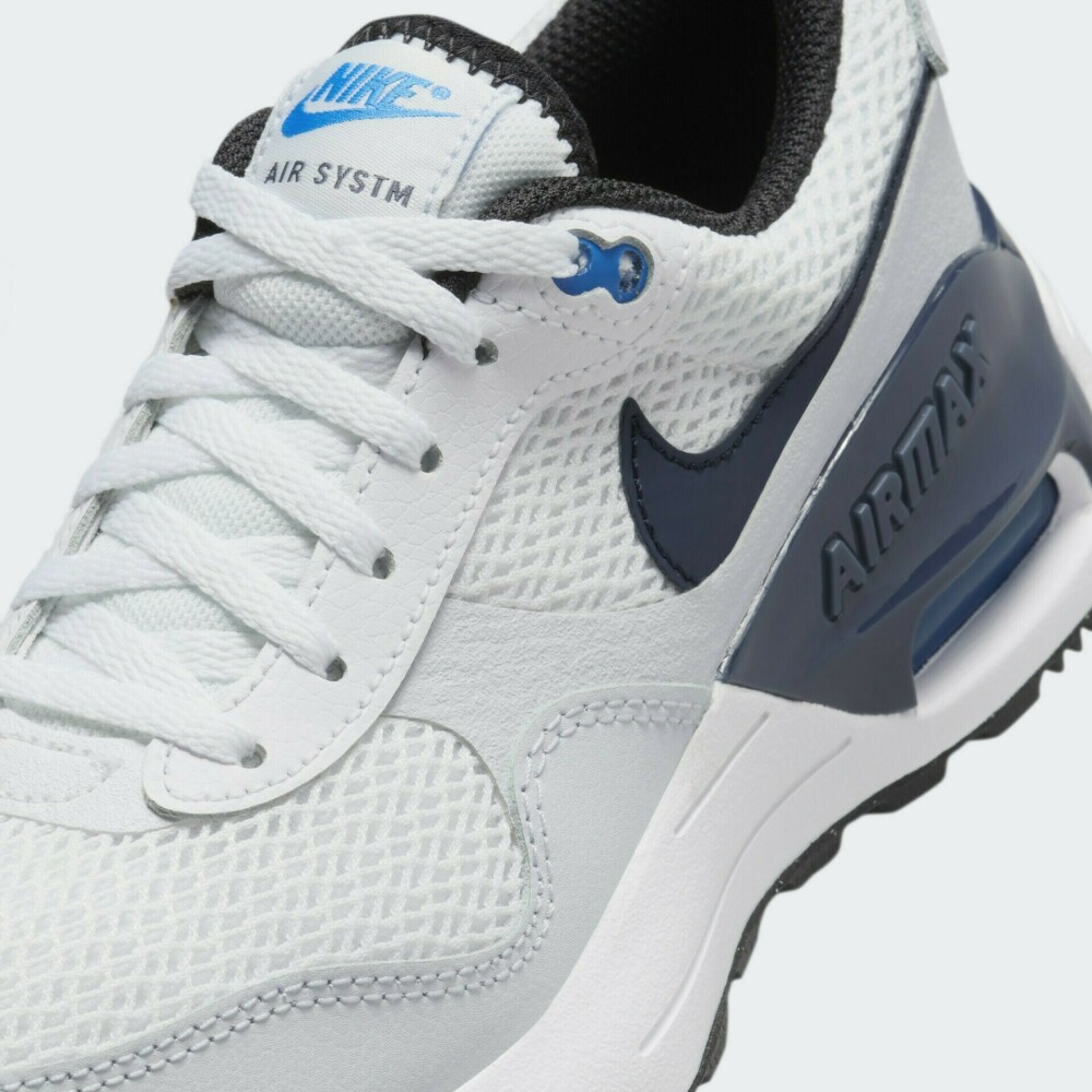 Середина 1980-х років для бренду Nike була не дуже вдалою, проте знаковою, оскільки саме тоді розпочався випуск всесвітньо відомих моделей Nike Air Max. З часом зовнішній вигляд зазнавав змін, проте система Air Max завжди залишалась видимою як в оригінальній версії. Кросівки Nike Air Max Systm є сучасними й стильними, що беруть своє натхнення з популярних моделей 80-х років. Верхня частина моделі виконана зі шкіри та текстилю, що забезпечуватиме повітропроникність. Проміжна підошва з подушкою Air Max гарантуватиме амортизація, а синтетичний матеріал навколо повітряного блоку додаватиме міцності. Гумова вафельна підошва забезпечує надійне зчеплення з різними поверхнями. Кросівки декоровані логотипом Swoosh. Модель рекомендована для дітей віком від 7 до 15 років.