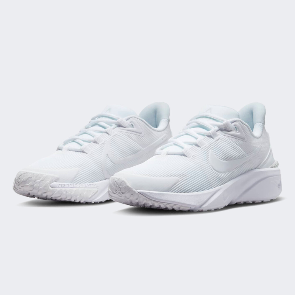 Кросівки Nike Star Runner 4 стануть чудовим вибором для тих підлітків, які полюбляють активний спосіб життя та займаються бігом. У своєму верху вони поєднують синтетичні матеріали для кращої міцності та сітку для приємного прохолодний ефект. Обтягнутий гумою перед кросівок запобігатиме незначним травмуванням пальців ніг, а текстурований виступ над підошвою п'яти полегшить процес роззування. М'яка устілка та проміжна підошва з пінного матеріалу гарантуватимуть легку амортизацію, поглинаючи ударні навантаження. Гумова підметка зі спеціальними канавками дозволить кросівкам адаптуватись до стилю ходи Вашої дитини, а також забезпечить зчеплення з різними поверхнями. Кросівки декоровані логотипом, який підкреслюватиме прихильність юного модника до спортивного стилю бренду. Модель рекомендована для дітей віком від 7 до 15 років. Nike піклується про зниження впливу на довкілля, тому товар виготовлено по програмі Move to Zero, яка спрямована до нульового викиду вуглецю та нульових відходів, що допомагає захистити майбутнє.