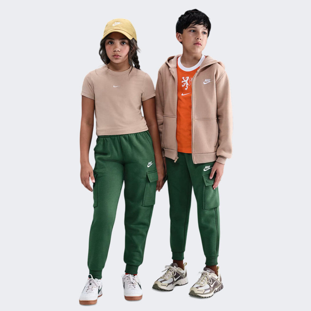 Колекція Nike Club — це гармонійне поєднання стилю, комфорту та функціональності, створене для тих, хто цінує якість у кожній деталі. Вона пропонує універсальний одяг, що ідеально підходить як для активного ритму міста, так і для відпочинку у вихідні. Спортивні штани Nike K Nsw Club Flc Crgo Pnt Lbr — це стиль і комфорт, які йдуть в ногу з ритмом активного підліткового життя. Вони створені для тих, хто хоче виглядати сучасно, почуватися впевнено й мати свободу рухів у будь-якій ситуації — від уроків у школі до вечірніх пригод із друзями. М’який фліс із волокнистою структурою дарує тепло й затишок, роблячи кожен день комфортним навіть у прохолодну погоду. Класичний крій із манжетами забезпечує зручну посадку, при цьому дозволяє бігати, грати чи просто насолоджуватися відпочинком без жодних обмежень. Еластичний пояс тримає штани на місці, даючи змогу підлітку не відволікатися на дрібниці, а жити на повну. Практичні бічні та накладні кишені додають зручності, адже усі потрібні речі завжди поруч. Завершує образ легендарний логотип Nike, який підкреслює спортивний характер і робить стиль більш виразним та впевненим. Модель рекомендовано для дітей віком від 7 до 15 років.