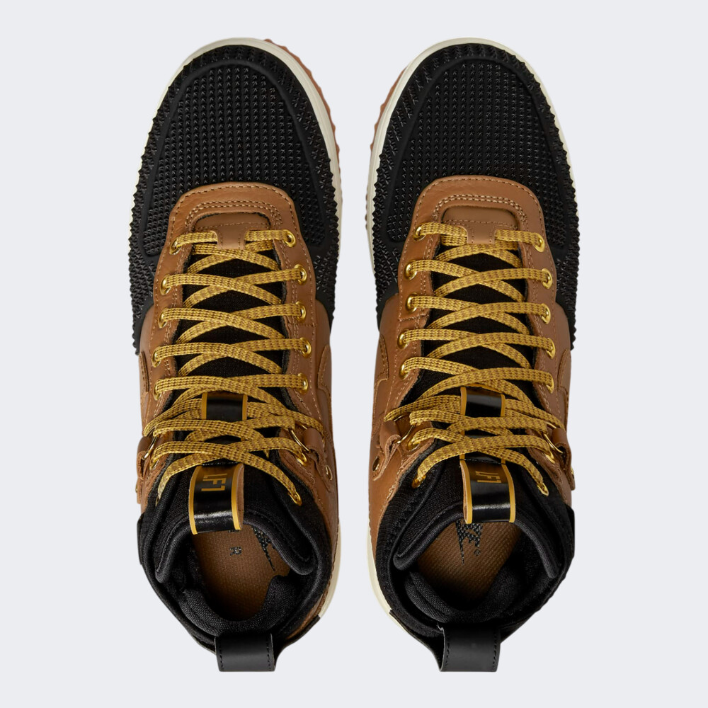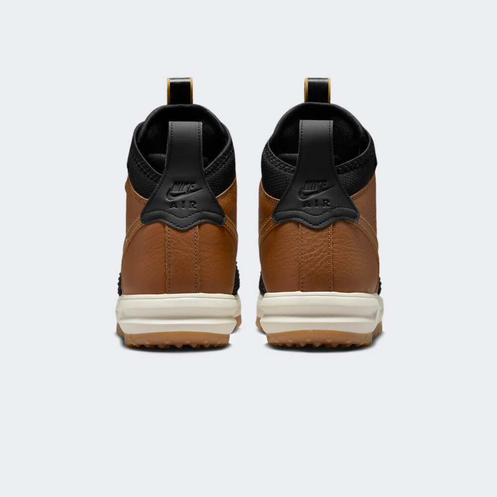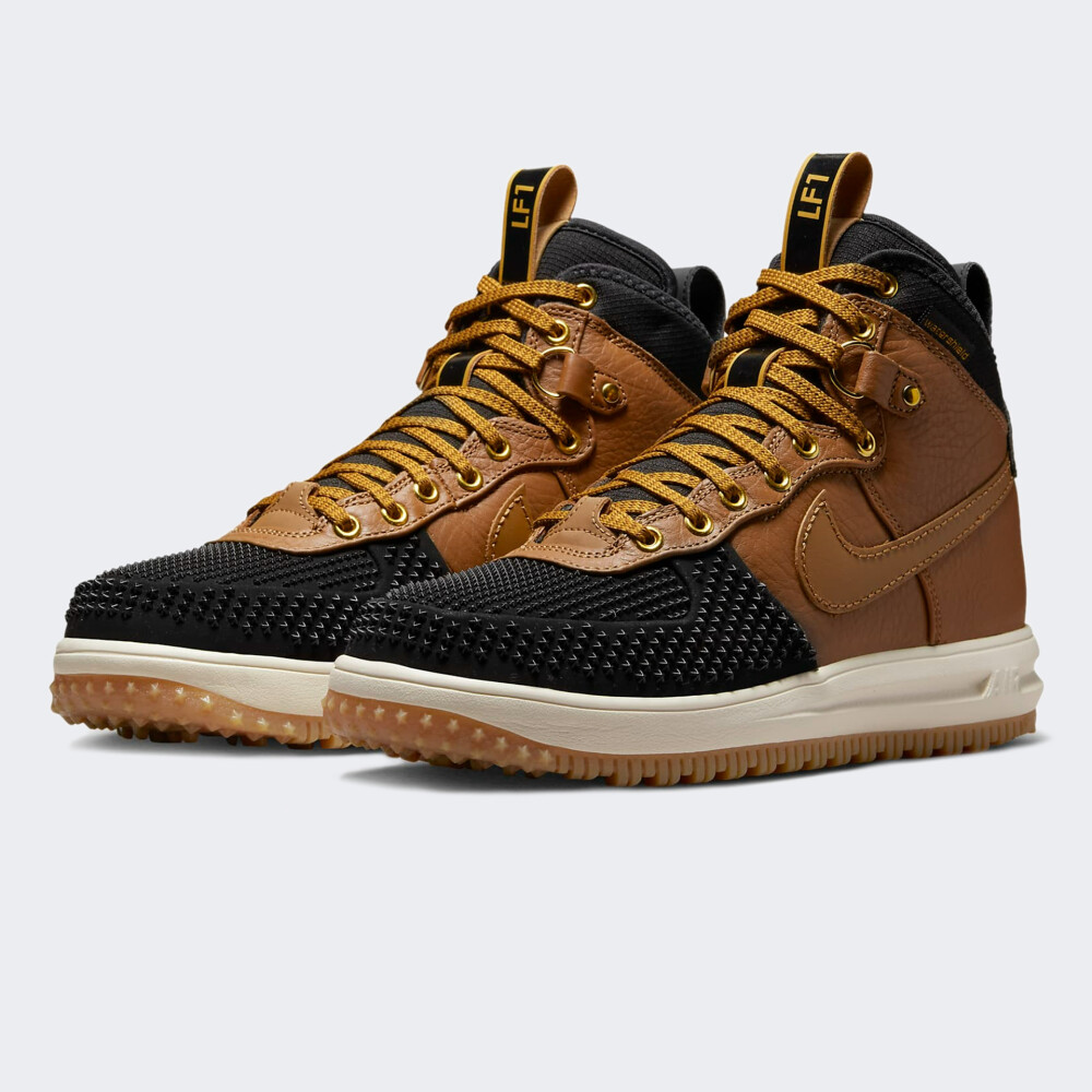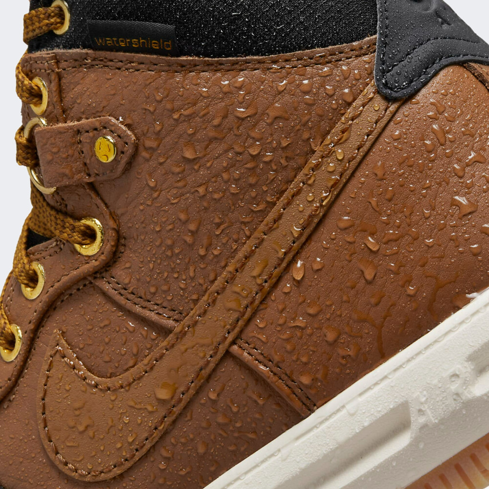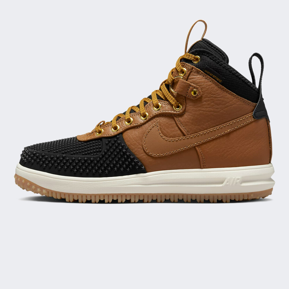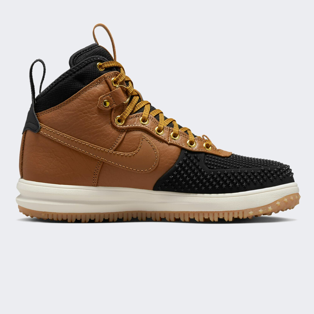 Черевики Nike Lunar Force 1 зроблять Вас готовим до будь-яких проявів погоди. Їх верх виготовлено зі шкіри та синтетичних матеріалів, що у поєднанні з водовідштовхувальним покриттям гарантуватиме Вашим ногам сухість та комфорт протягом усієї прогулянки. Посилена передня частина черевик запобігатиме травмуванням та значно збільшуватиме термін експлуатації. Злегка завищена конструкція зі щільною шнурівкою надаватиме необхідної підтримки та покращуватиме стабільність. Невелике утеплення створюватиме Вашим ногам відчуття затишку у прохолодні дні. Проміжна підошва з блоком Air сприятиме поглинанню ударних навантажень, наповнюючи Ваші кроки м'якістю. Тверда гумова підметка з агресивним малюнком протектора забезпечуватиме надійне зчеплення з поверхнями, щоб Ви могли впевнено вирушати у повсякденних справах попри вологу погоду. Стильний дизайн черевиків доповнено логотипом, який підкреслюватиме Вашу відданість стилю легендарного бренду.