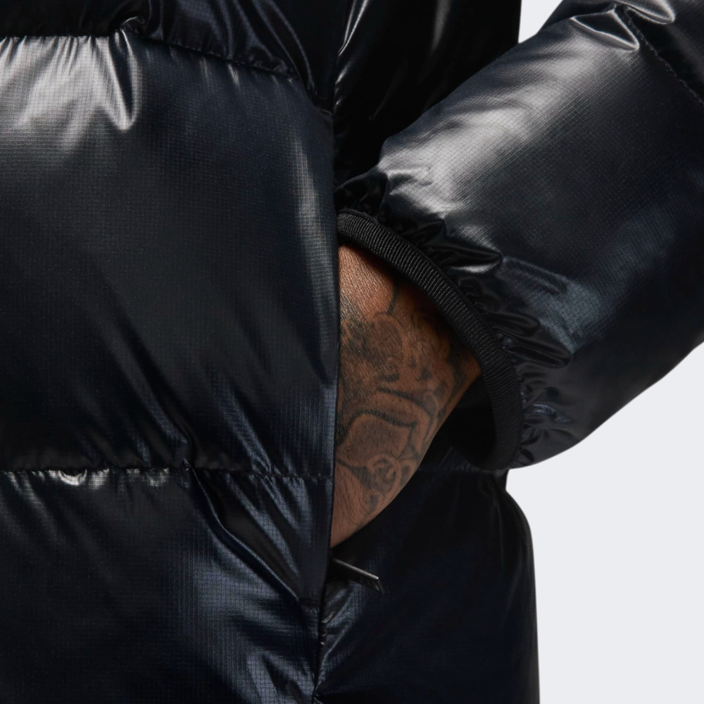 Відомий баскетболіст Майкл Джордан та легендарна компанія Nike створили всесвітньо відомий бренд Jordan, який досі має небувалу популярність. Вироби бренду асоціюється з успіхом та перемогами. Пуховик Jordan M J Flight Down Puffer подарує Вам відчуття затишку у холодні місяці. Вона виготовлена з міцного матеріалу ripstop та має водовідштовхувальне покриття, що гарантуватиме захист від дрібного дощу чи мокрого снігу. Використання пухового наповнювача та технології Therma-Fit забезпечуватиме відмінне збереження тепла, тому морозні дні не стануть на заваді Ваших планів. Вільний крій пуховика надаватиме достатньо простору для Ваших рухів та сприятиме створенню багатошарових образів. Тонкі еластичні манжети на рукавах та спеціальний шнурок знизу моделі запобігатимуть втратам тепла. Блискавка з подвійним бігунком та високий комір сприятимуть зручності під час носіння, а внутрішня та бічні кишені на блискавках дозволятимуть безпечно мати при собі корисні та цінні дрібнички. Пуховик декоровано невеликим вишитим логотипом, що підкреслюватиме Вашу відданість спортивному стилю Jordan.