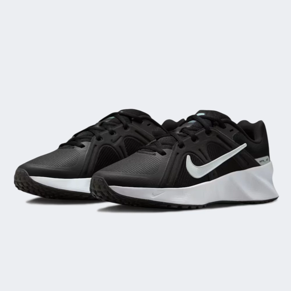 Nike M METRO TEK — кросівки для щоденної активності з сучасним спортивним характером. Комбінований верх із синтетичних панелей і дихаючих текстильних вставок поєднує зносостійкість і комфорт, підтримуючи приємний мікроклімат у русі. Класична шнурівка по центру дозволяє точно відрегулювати посадку, а м’який язичок знижує тиск на підйом. Легкий спінений середній шар підошви додає пружності кроку, тоді як зносостійка гумова підметка з рельєфним протектором покращує зчеплення і витривалість. Підсилена п’яткова зона і вставка в носку підвищують стабільність і захищають у зонах інтенсивного контакту. Чорно-білий дизайн із контрастною білою проміжною підошвою та світло-блакитним Swoosh підкреслює фірмовий стиль Nike. Модель підходить на літо та демісезон, даруючи легкість і комфорт у місті, на тренуваннях та під час щоденних справ.