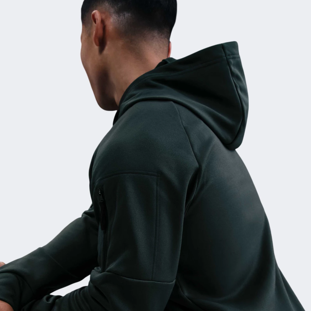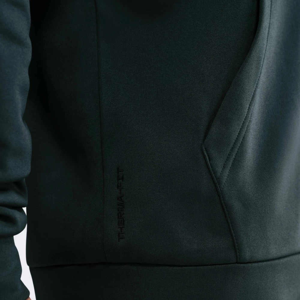 Кофта Nike M Nk Tf Hd Fz розроблена для того, щоб подарувати максимальний комфорт, поки Ви підвищуватимете ефективність своїх тренувань. Вона виготовлена з приємного на дотик флісового матеріалу та з технологією Therma Fit, тому гарантуватиме чудову теплоізоляцію під час низьких температур. Класичний крій з рукавами реглан та манжетами надаватиме зручну посадку, не сковуючи при цьому Ваших рухів. Злегка завищений комір та капюшон зі спеціальним шнурком гарантуватимуть надійний захист від несприятливих погодних умов. Завдяки кишеням спереду Ваші руки завжди залишатимуться в теплі, а невелика кишеня на блискавці на лівому рукаві дозволить приховати ключ або картку. Лаконічний дизайн кофти доповнено невеликим логотипом, який підкреслюватиме Вашу прихильність до спортивного стилю бренду. Nike піклується про зниження впливу на довкілля, тому товар виготовлено по програмі Move to Zero, яка спрямована до нульового викиду вуглецю та нульових відходів, що допомагає захистити майбутнє.