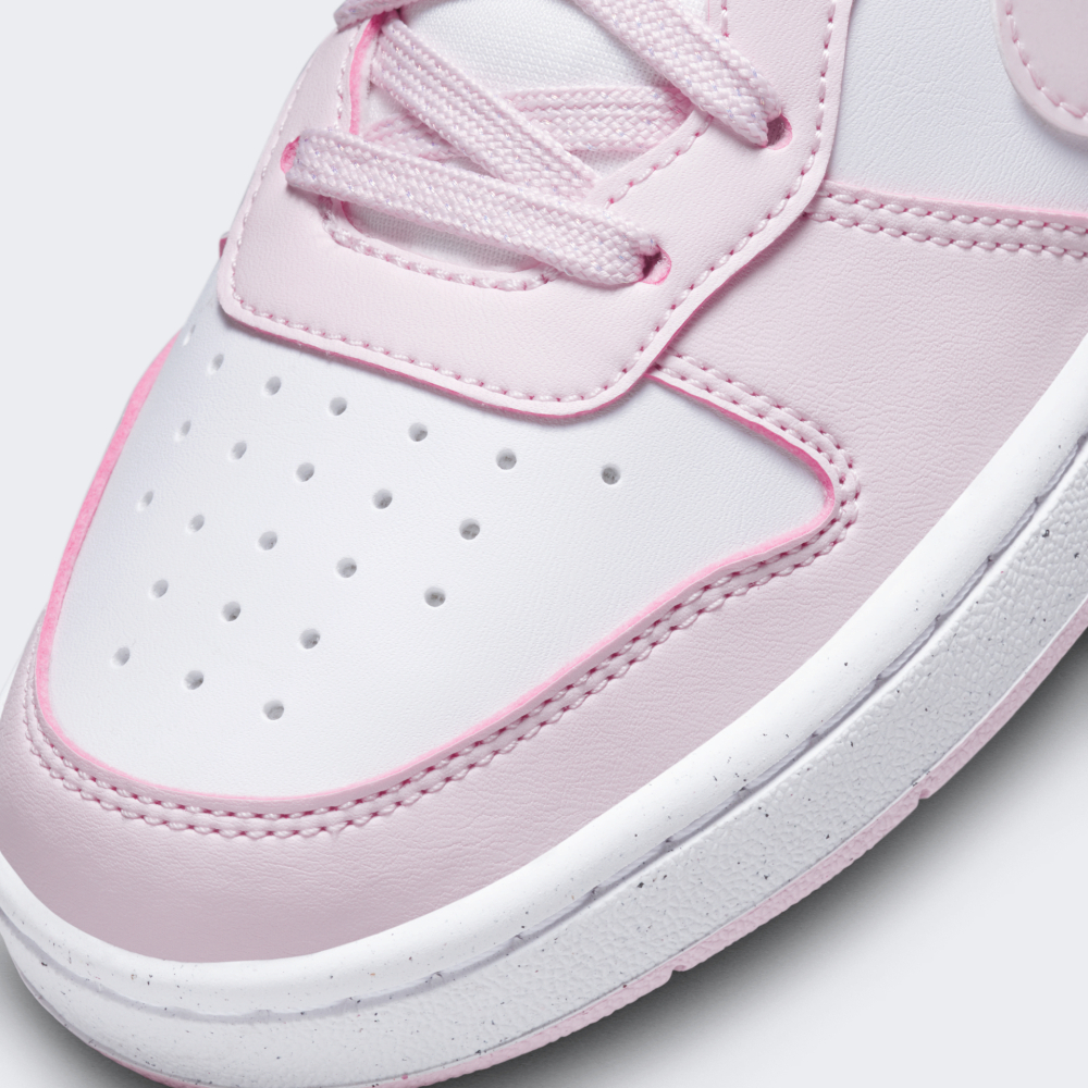 Кеди Nike Court Borough Low Recraft Bg — це поєднання баскетбольного дизайну 80-х та сучасного комфорту, яке ідеально пасуватиме до повсякденного гардероба юних модників. Вони стали втіленням класики, яка не втрачає своєї актуальності й завжди залишатиметься у тренді. Верх із синтетичної шкіри доповнений перфорованими отворами, що забезпечуватиме не лише міцність, але й ідеальний мікроклімат для ніг, навіть під час активного дня. Матеріал легкий у догляді й має високу стійкість до зношування, тому кеди збережуть свій вигляд навіть після численних пригод. Гумова підошва з гнучкими канавками створюватиме природний перекат стопи, додаючи плавності кожному кроку. Нековзна поверхня забезпечуватиме відмінне зчеплення з поверхнями та не залишатиме слідів на підлозі. Контрастні декоративні елементи та фірмовий логотип Nike надаватимуть кедам яскравого акценту, який підкреслюватиме стильний образ Вашої дитини. Модель стане улюбленим взуттям для щоденних пригод і втіленням індивідуальності юного покоління. Вони рекомендовані для дітей віком від 7 до 15 років. Nike піклується про зниження впливу на довкілля, тому товар виготовлено по програмі Move to Zero, яка спрямована до нульового викиду вуглецю та нульових відходів.