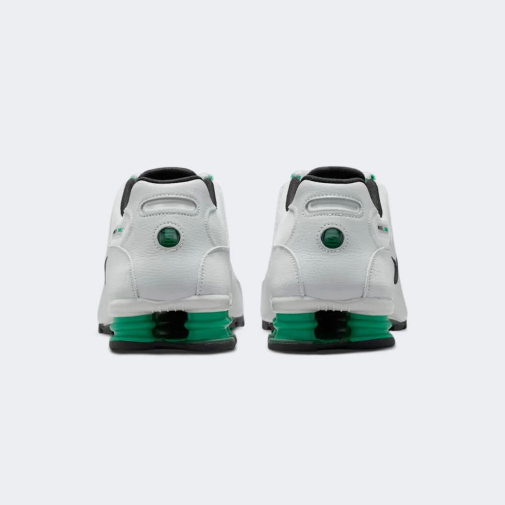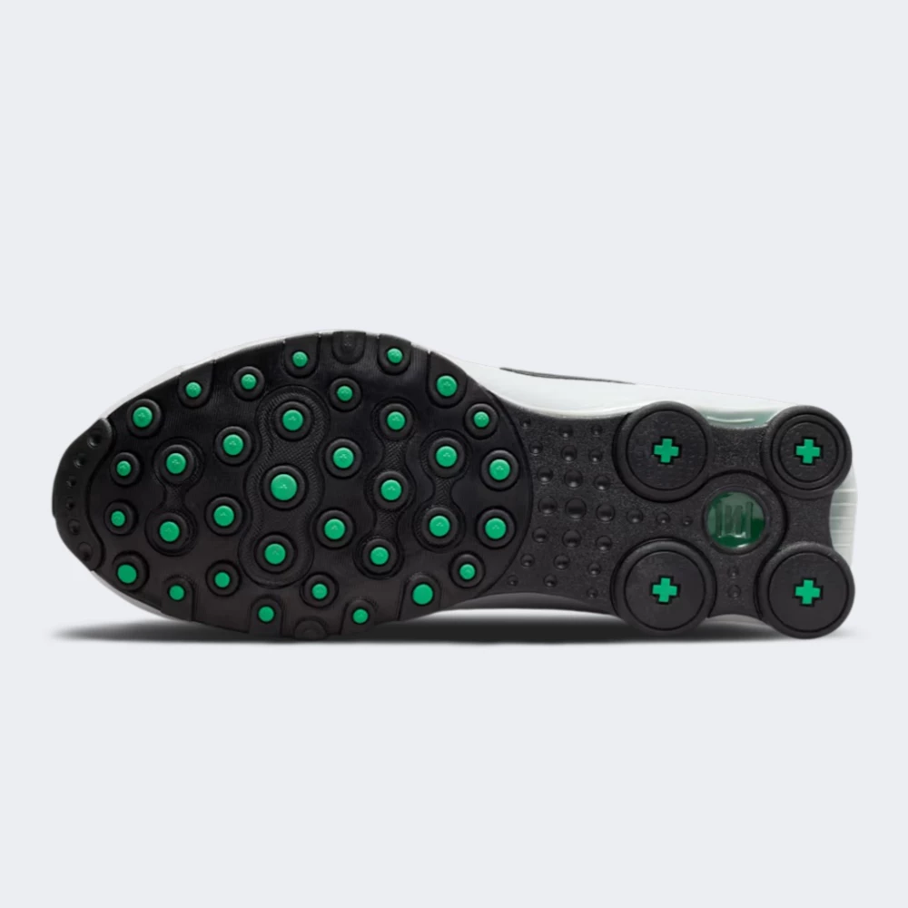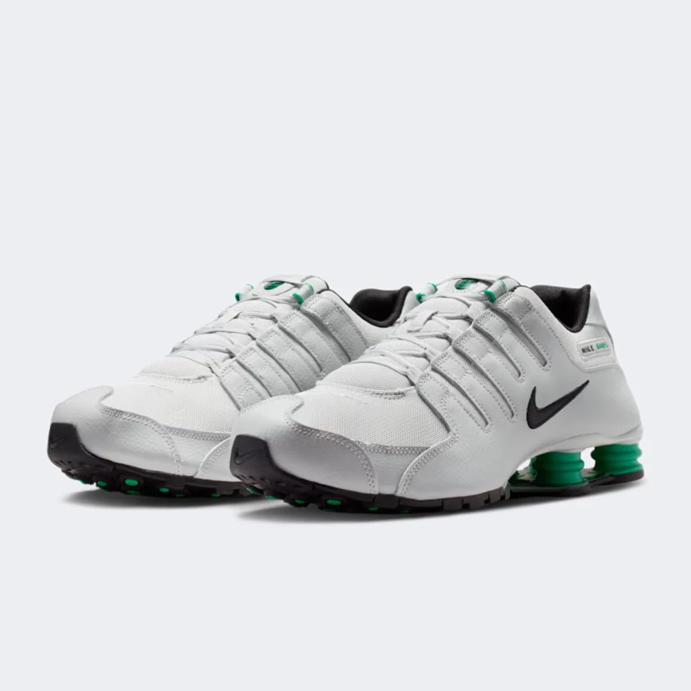 Кросівки Nike Shox Nz поєднують культову естетику 2000-х із сучасними технологіями, щоб подарувати відчуття драйву кожному кроку. Верх із синтетичної шкіри доповнено текстильними вставками, тому забезпечує баланс підтримки й вентиляції, завдяки чому ноги залишаються в комфорті. Шнурівка через петлі дозволяє налаштувати ідеальну фіксацію, м’який комір і гладкі внутрішні шви зменшують ризик натирання. Унікальна система амортизації Nike Shox поглинає удари й повертає енергію, створюючи відчуття пружності та м'якості з кожним кроком. Міцна підошва з рельєфним протектором забезпечує чудове зчеплення на різних міських поверхнях. Контрастний чорний Swoosh і зелені акценти на п’ятковому блоці Shox підкреслюють фірмовий стиль.