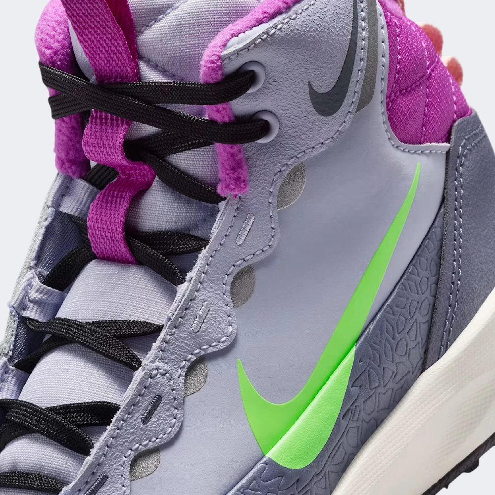 Черевики Nike Terrascout Bg створені для юних дослідників, які готові до нових пригод за будь-якої погоди. Вони поєднують комфорт, захист і стиль, щоб кожен день був сповнений руху, тепла й упевненості. Міцний верх із захисним бризковиком протистоїть бруду та вітру, а стьобана тканина навколо коміра та м’яка флісова підкладка дарують приємне відчуття затишку у прохолодні дні. Занижений комір ззаду та зручні петельки на п’яті та язичку спрощують взування, а шнурівка забезпечує щільну фіксацію стопи — для стабільності під час активних прогулянок чи ігор. Пінна проміжна підошва додає легкості та м'якості кожному кроку, що важливо для насиченого підліткового ритму. Гумова підметка з гнучкими канавками гарантує зчеплення з поверхнями та природну свободу рухів, тому Ваша дитина зможе сміливо рухатись вперед. Світловідбивні елементи підвищують безпеку у вечірній час, а логотипи Nike додають стильного спортивного настрою до будь-якого підліткового образу. Модель рекомендована для дітей віком від 7 до 15 років.