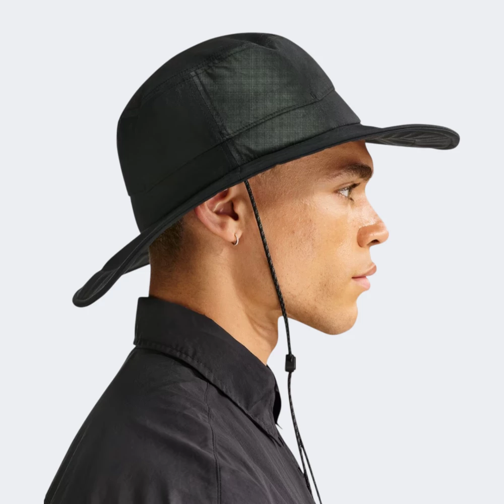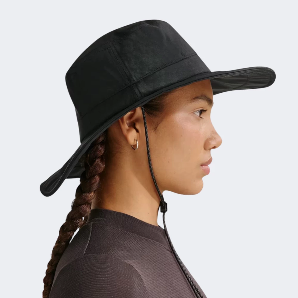 Панама Nike U Nk Apex Bkt Wb Acg L допоможе зустрічати сонячні дні з комфортом, упевненістю та легендарним спортивним настроєм. Міцний нейлоновий верх із водовідштовхувальним покриттям допомагає захистити від короткочасного дощу й бризок. Технологія Dri-FIT підтримує сухість та відводить зайву вологу з лоба під час руху. Широкі поля створюють тінь для обличчя і додають комфорту у сонячні дні. Шнурівка з фіксатором дозволяє надійно закріпити панаму під час вітру та налаштувати посадку під себе. Чорний однотонний дизайн підкреслено білим трикутним логотипом ACG — лаконічний акцент, що легко поєднується з повсякденними образами. Nike піклується про зниження впливу на довкілля, тому модель виготовлено по програмі Move to Zero, яка спрямована до нульового викиду вуглецю та нульових відходів.