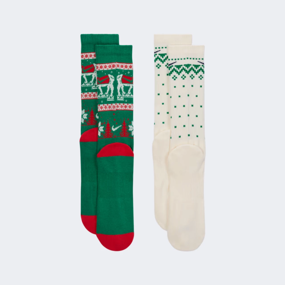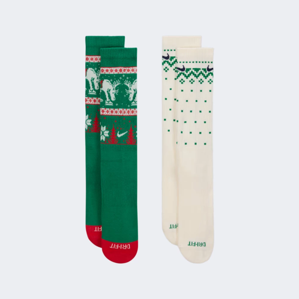 Набір шкарпеток Nike U Nk Ed Pls Csh Crew Ww 2pr складається з двох пар різного кольору. Вони створені, щоб додати Вашим образам особливого різдвяного шарму та тепла, яких так хочеться у святковий сезон. Вони виготовлені з надзвичайно м’якої пряжі, яка ніжно огортає стопу, даруючи тепло й приємні відчуття протягом усього дня. Технологія Dri-FIT дбає про сухість, адже миттєво відводить вологу навіть під час активних прогулянок, катання на ковзанах чи передсвяткових клопотів. Додаткова амортизація в зоні п’яти та передньої частини стопи робить кожен крок м’яким і приємним, а підтримувальна дуга забезпечує ідеальну посадку, повторюючи природні контури Вашої стопи. Високий крій гарантує надійну фіксацію та ще більше тепла — саме те, що потрібно в прохолодну пору. Казкові зимові візерунки додають святкового настрою навіть буденному одягу: варто лише вдягнути ці шкарпетки — і з’являється відчуття, що десь поруч мерехтять святкові вогники.