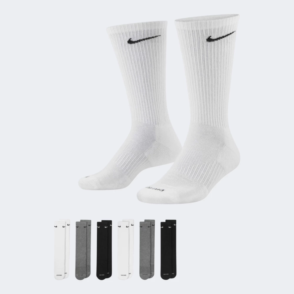 Набір шкарпеток Nike U Nk Everyday Plus Cush Crew 6pr - 132 складається з шести пар трьох кольорів: білого, сірого та чорного, тому пасуватимуть до будь-якого спортивного образу. Вони виготовлені з якісного матеріалу з технологією Dri-Fit, тому Ваші ноги будуть залишатись у сухості та комфорті навіть під час активних тренувань. Завдяки синтетичним волокнам шкарпетки відмінно зберігатимуть свою форму після багаторазового прання. Ущільнені зони носка і п'ятки сприятимуть поглинанню ударних навантажень та легкій амортизації, наповнюючи кожний крок м'якістю. Завдяки спроєктованій спеціальній дузі для правильної посадки та підтримки, Вам гарантовано зручність протягом усього тренування. Вони мають манжети в рубчик, які рівномірно огортатимуть щиколотку та нижню частину гомілки для оптимальної фіксації. Шкарпетки декоровані логотипами, які підкреслюватимуть Вашу відданість спорту та спортивному стилю.