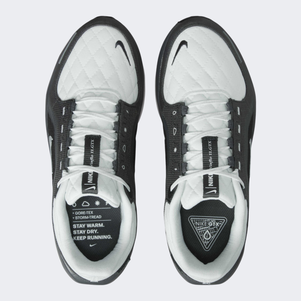 Кросівки Nike W Air Winflo 11 Gtx створені для того, щоб Ви могли впевнено продовжувати займатись бігом у будь-яку погоду — від осіннього дощу до зимового мокрого снігу. Вони виготовлені з високоякісних матеріалів із легким утепленням та водонепроникною мембраною Gore-Tex, яка забезпечує чудову термоізоляцію й зберігає стопи сухими навіть у найвологіших умовах. Система шнурівки щільно фіксує стопу, наповнюючи кожен Ваш крок впевненістю. Проміжна підошва Cushlon з амортизацією Air даруватиме повернення енергії, забезпечуючи м’якість, стабільність і підтримку, що дозволить зберігати легкість рухів навіть на складних маршрутах. Гумова підошва з технологічним протектором Storm-Tread забезпечуватиме надійне зчеплення з будь-якими типами поверхонь — від мокрого асфальту до сніжної стежки. Вона знижує ризик ковзання та дарує стабільність, яка надихає виходити на пробіжку попри дощ або сльоту. Кросівки декоровані світловідбивними елементами, які підвищують Вашу видимість у темряві, тому Ви почуватиметесь безпечно під час ранкових чи вечірніх пробіжок.