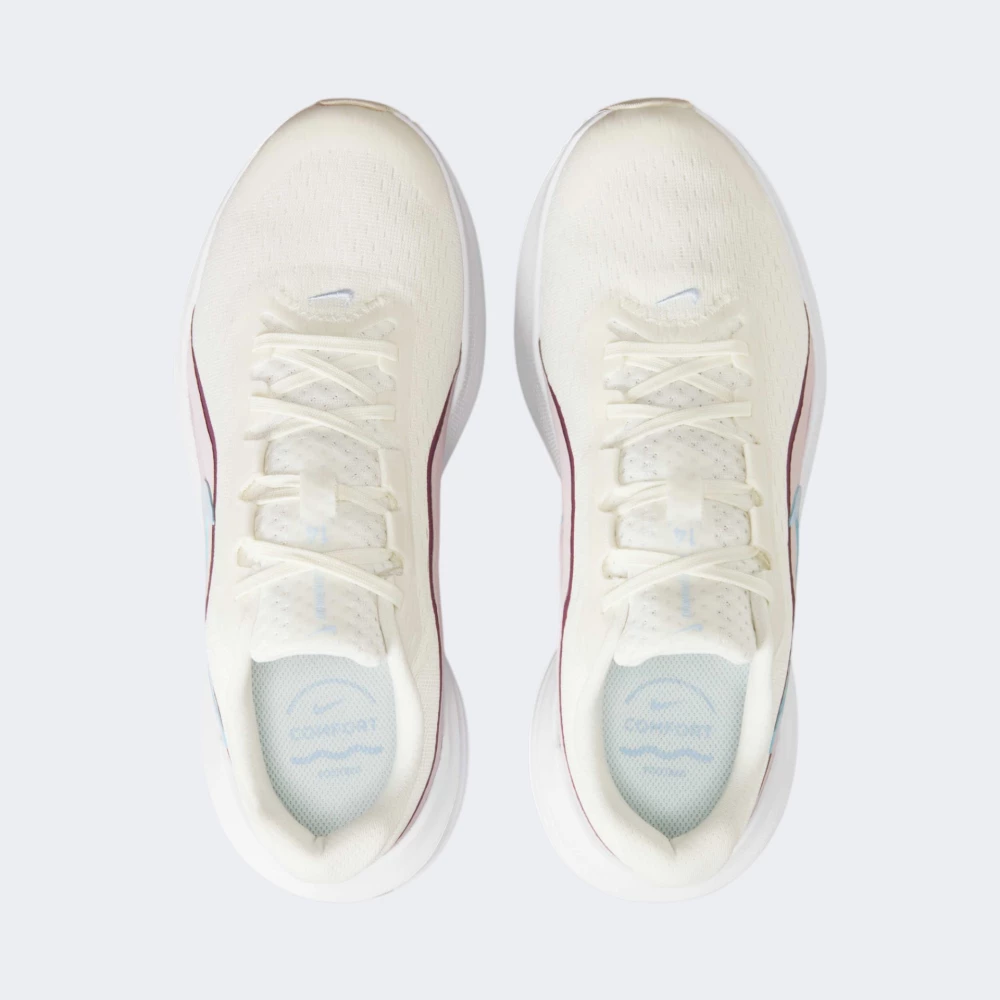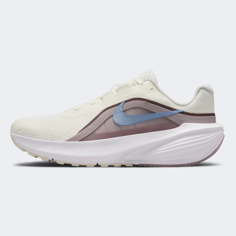 Nike W DOWNSHIFTER 14 — легкі бігові кросівки для базових тренувань і щоденної активності. Сітчастий білий верх вільно пропускає повітря, допомагаючи зберігати комфорт улітку та в демісезон, а синтетичні накладки підсилюють зони навантаження та спрощують догляд. Класична центральна шнурівка разом із додатковими накладками забезпечує надійну фіксацію стопи, м’який комір і гладкі внутрішні шви зменшують ризик натирання. Легка спінена проміжна підошва дарує пружну амортизацію і плавний перекат, а гнучка конструкція сприяє природному руху. Зовнішня гумова підметка зі зносостійким протектором додає довговічності та зчеплення на різних поверхнях. Блакитний Swoosh ефектно підкреслює силует, а пастельні рожево-бежеві акценти й коричнево-сливові деталі надають моделі чистого, жіночного характеру. Серія Nike Downshifter створена з урахуванням базових потреб спортсменів — для впевнених стартів у бігу та комфортних повсякденних кроків.