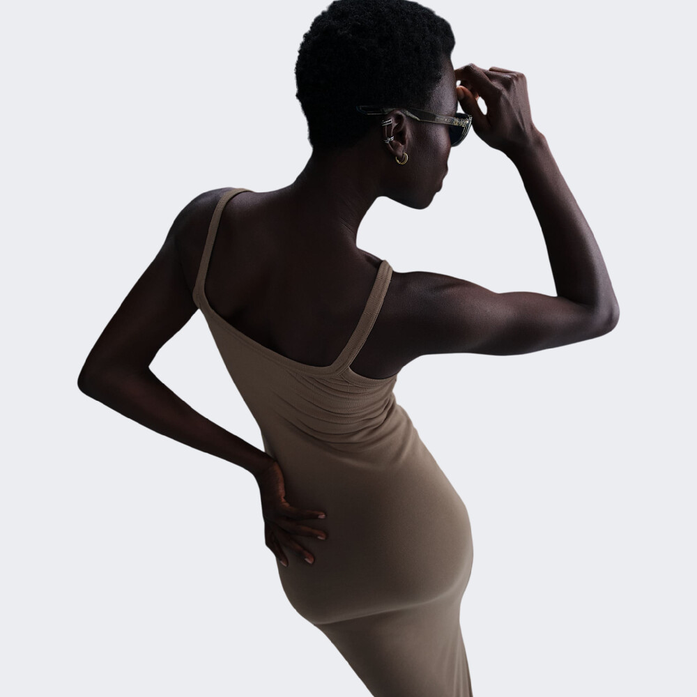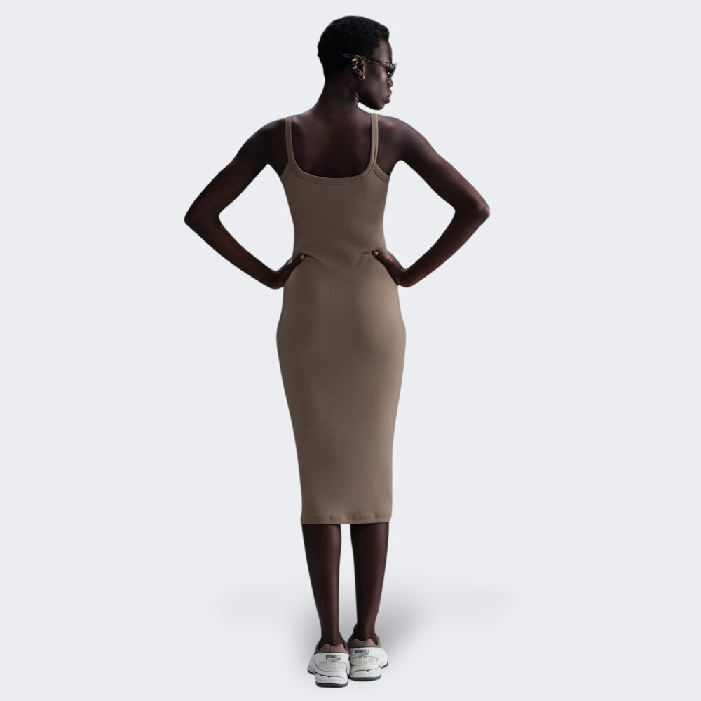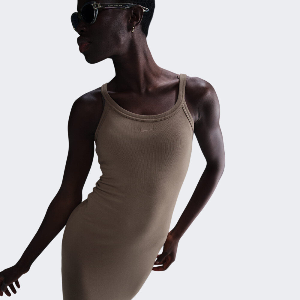 Плаття Nike W Nsw Nk Chll Knt Mrib Tnk Drs — це смілива стилістична заява для тих, хто не боїться бути у центрі уваги та вміє транслювати свій настрій через моду. Воно створене для того, щоб підкреслити Вашу впевненість, індивідуальність і внутрішню силу. М’який трикотаж у міні-ребристу текстуру приємно прилягає до тіла, забезпечуючи максимальний комфорт протягом усього дня. Його еластичність дозволяє тканині легко драпіруватися, красиво підкреслюючи силует без сковування рухів — ідеальний варіант як для прогулянок, так і для яскравих міських образів. Фасон без рукавів забезпечує свободу та легкість, а довжина нижче коліна додає вишуканості й сучасного шарму. Бретелі, що переходять у вигнутий виріз горловини, створюють чисту, мінімалістичну лінію, яка підсилює відчуття гармонії та витонченості. Лаконічний логотип Nike делікатно завершує образ, залишаючи акцент на Вашому стилі, але при цьому нагадуючи про спортивну ДНК бренду. Це плаття — ідеальний вибір для жінок, які не йдуть на компроміси між комфортом і модою та бажають щодня виглядати впевнено, актуально і натхненно.