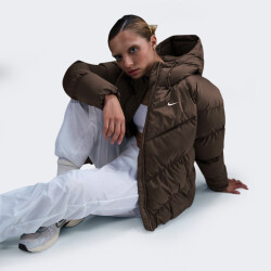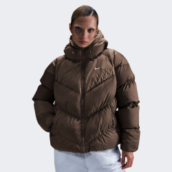 Куртка Nike W Nsw Sf Synfl Nk Wpfr даруватиме Вам відчуття затишку та впевненості під час міських пригод у холодні місяці. Вона виготовлена з преміальних матеріалів, які у поєднанні з інноваційною технологією Storm Fit стануть надійним захистом від вітру, дрібного дощу чи мокрого снігу. Використання синтетичного наповнювача забезпечуватиме відмінне збереження тепла та створюватиме відчуття затишку. Вільний короткий крій надаватиме достатньо простору для Ваших рухів, сприяючи при цьому багатошаровості. Капюшон та високий комір створюватимуть додатковий бар'єр від негоди, надаючи впевненості, що погода не зіпсує Ваших планів на день. Бічні кишені дозволять мати при собі корисні дрібнички та за потреби зігріти руки. Куртка декорована логотипом, який підкреслюватиме Вашу прихильність до спортивного стилю бренду. Nike піклується про зниження впливу на довкілля, тому товар виготовлено по програмі Move to Zero, яка спрямована до нульового викиду вуглецю та нульових відходів.
