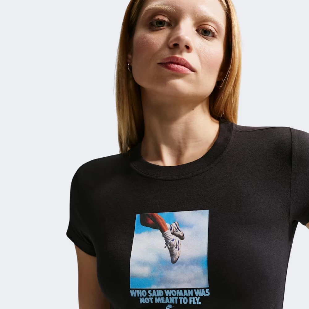 Футболка Nike W Nsw Ss Tee Iwd Photo створена для тих, хто живе у власному ритмі та прагне показувати світові свою енергію. М’яка бавовняна тканина дарує відчуття легкості та комфорту протягом усього дня — від активних міських прогулянок до моментів відпочинку з друзями. Злегка приталений укорочений крій формує стильний силует, підкреслюючи фігуру та водночас залишаючи повну свободу рухів. Круглий виріз із м’якою внутрішньою стрічкою дбайливо захищає шкіру від подразнення, щоб Ви могли почуватися впевнено протягом усього дня. Головним акцентом моделі стає виразний принт із надписом “Who said woman was not meant to fly”, який нагадує: жодних меж не існує, коли Ви вірите у себе. Тоді як невеликий логотип Nike додає образу впізнаваного спортивного характеру та підкреслює сміливий стиль своєї власниці.
