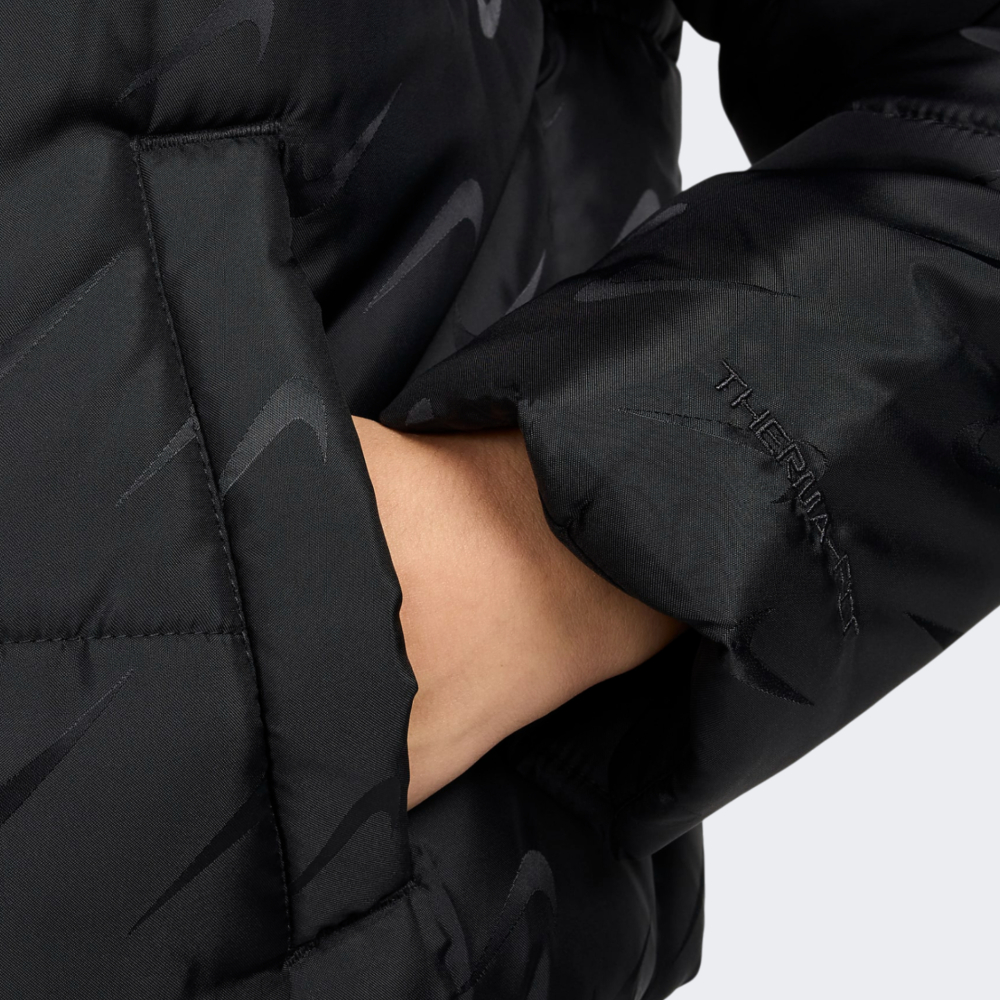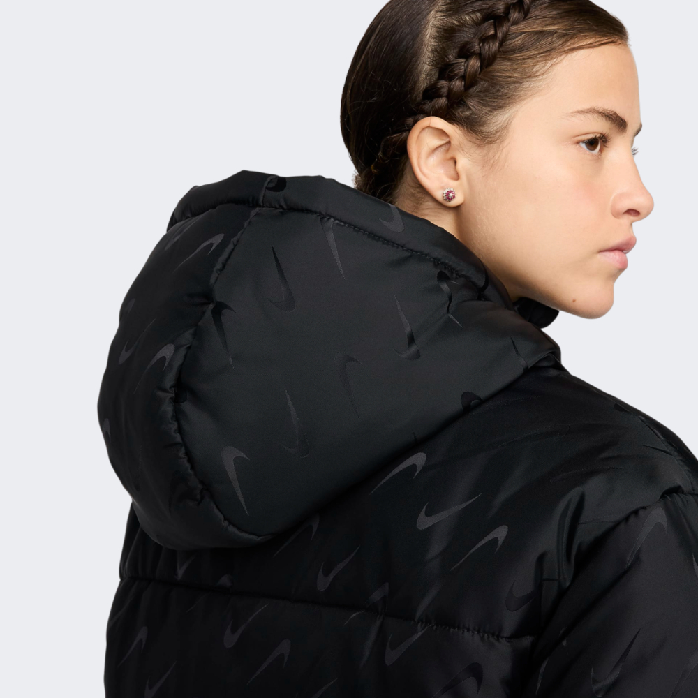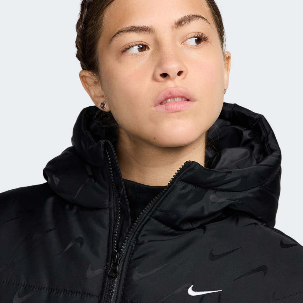 Куртка Nike W Nsw Tf Snfl Nk Clsc Pfr Aop дозволить Вам не відмовлятись від улюбленого стилю під час міських пригод у прохолодні місяці. Вона виготовлена з якісних матеріалів, які мають водовідштовхувальне покриття для захисту від дрібного дощу чи мокрого снігу, що гарантуватиме відчуття комфорту у будь-яку погоду. Синтетичний утеплювач надаватиме тепло та затишок, дозволяючи залишатись активною у прохолодні дні. Вільний короткий крій не сковуватиме Ваших рухів та сприятиме створенню стильних багатошарових образів. Капюшон із високим коміром забезпечуватиме захист від негоди, додаючи куртці елегантності та функціональності. Бічні кишені не тільки зігріють Ваші руки у будь-який момент, а й дозволять мати при собі корисні дрібнички. Куртка декорована витонченим логотипом, який підкреслить Вашу прихильність до стилю легендарного бренду. Nike піклується про зниження впливу на довкілля, тому товар виготовлено по програмі Move to Zero, яка спрямована до нульового викиду вуглецю та нульових відходів, що допомагає захистити майбутнє.