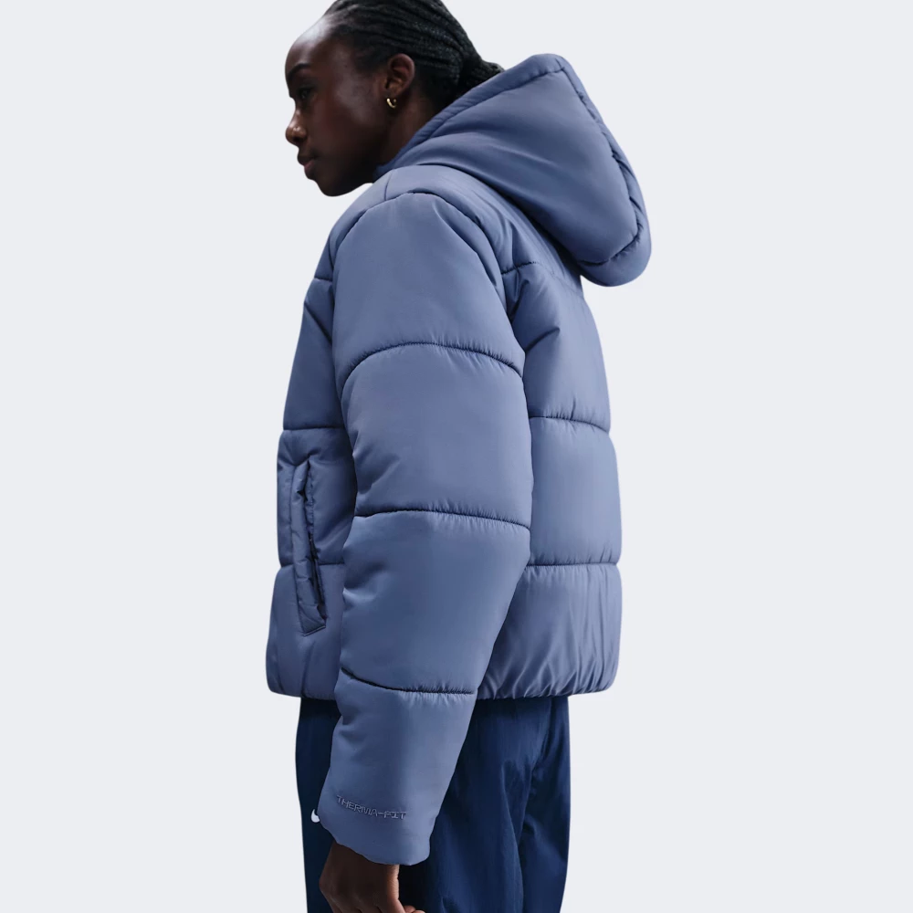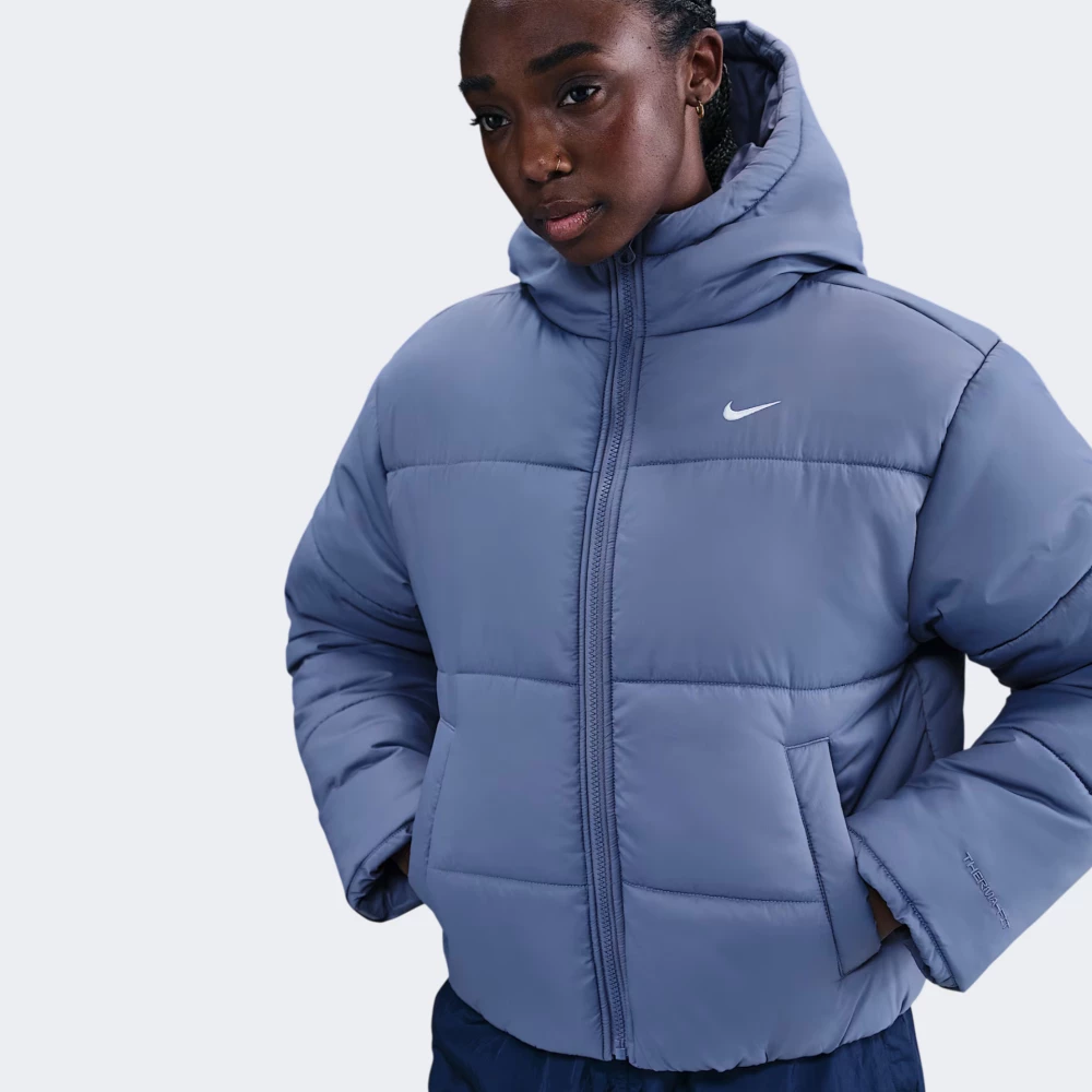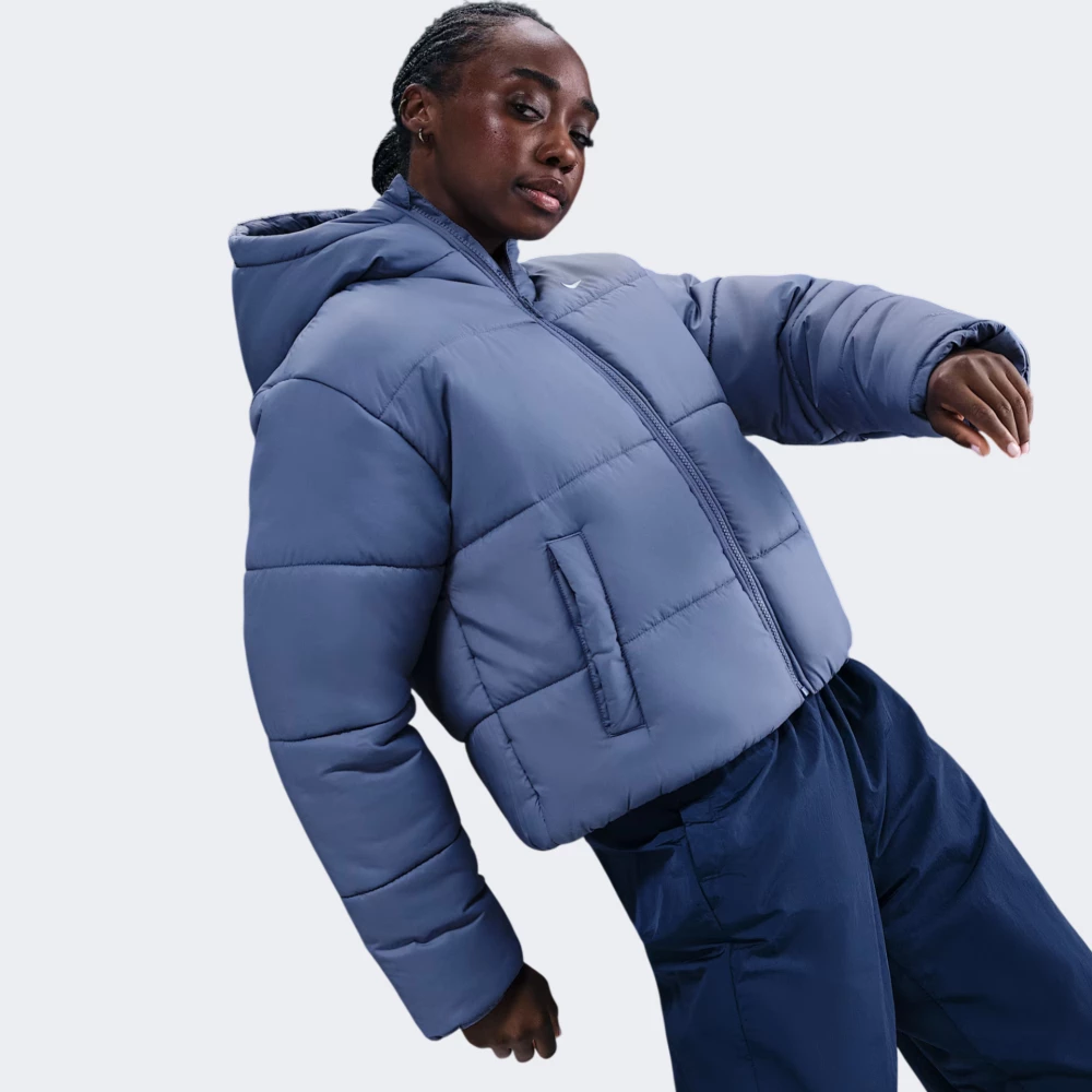 Куртка Nike W Nsw Tf Synfl Nk Clsc Pfr створена для того, щоб Ви могли стильно виглядати та відчувати себе комфортно під час прогулянок у прохолодну погоду. Вона виготовлена з якісних матеріалів з водовідштовхувальним покриттям для захисту від дрібного дощу чи снігу. Куртка має синтетичний утеплювач з технологією Therma-FIT, тому гарантуватиме тепло та затишок. Вільний злегка укорочений крій надаватиме достатньо простору для Ваших рухів, сприяючи при цьому багатошаровості. Капюшон та високий комір створюватимуть додатковий бар'єр від негоди, надаючи впевненості, що погода не зіпсує Ваших планів на день. Бічні кишені дозволять мати при собі корисні дрібнички та за потреби зігріти руки. Куртка декорована логотипом, який підкреслюватиме Вашу прихильність до спортивного стилю бренду. Nike піклується про зниження впливу на довкілля, тому товар виготовлено по програмі Move to Zero, яка спрямована до нульового викиду вуглецю та нульових відходів.