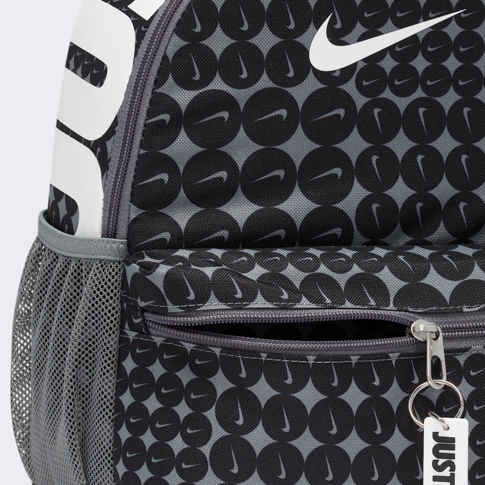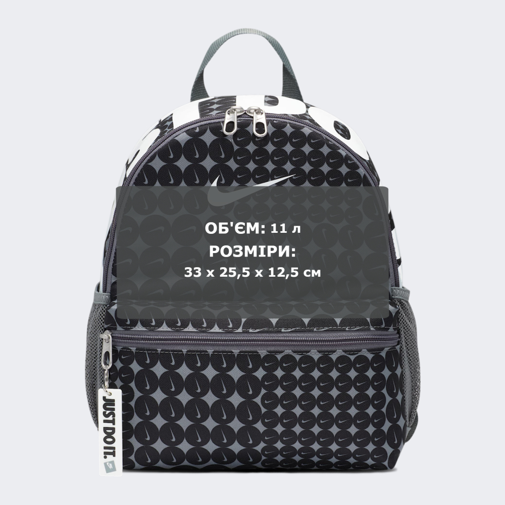 Рюкзак Nike Y Nk Brsla Jdi Mni Bk-Aop Sp25 додаватиме у повсякденні образи юних модників вишуканого спортивного стилю бренду. Він виготовлений з якісних матеріалів, які є досить легкими у догляді, оскільки забруднення достатньо протерти вологою тканиною. Основне відділення дозволить дитині зберігати свій гаманець, телефон, книгу, а також інші речі, які їй необхідно мати при собі. Передня кишеня на блискавці пропонує достатньо простору для зберігання дрібних предметів, які не хочеться втратити в безладі основного відділення. Бічні сітчасті кишені вмістять пляшку з водою, що дозволятиме швидко втамувати спрагу. Ручка для перенесення та регульовані плечові ремені гарантуватимуть декілька варіантів транспортування рюкзака. Рюкзак декорований суцільним принтом з повторюваним логотипом та є ідеальним варіантом для юного мандрівника, а підвісний напис Just Do It - створюватиме грайливий настрій на нові пригоди!