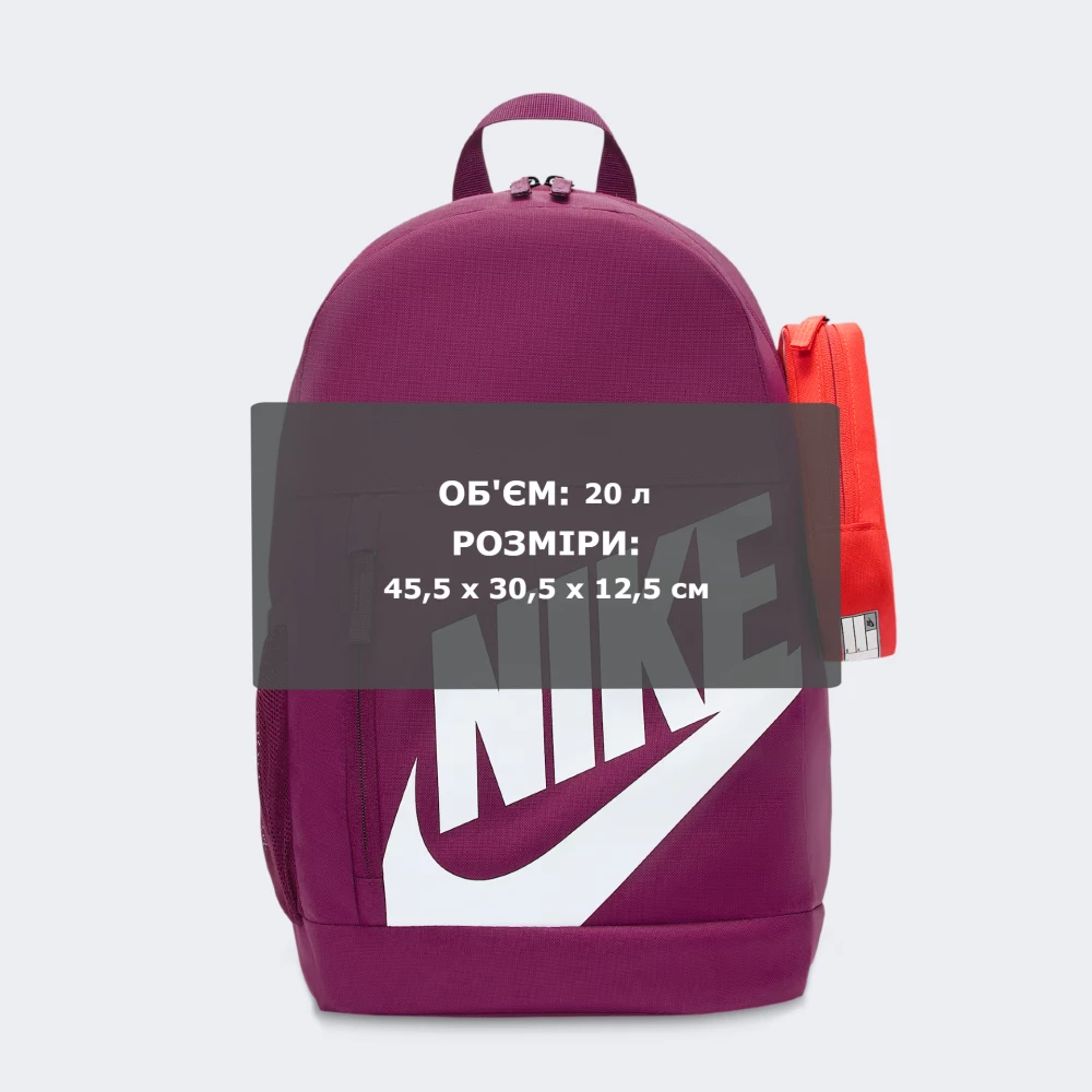 Рюкзак Nike Y Nk Elmntl Bkpk Shoebox — це стильний і функціональний аксесуар, який підкреслить індивідуальність Вашої дитини та стане незамінним у щоденному ритмі. Він виготовлений з якісного, зносостійкого матеріалу, що легко очищується — забруднення достатньо протерти вологою тканиною. Просторе основне відділення, передня кишеня на блискавці та бічна сітчаста дозволяють впорядковано розмістити все необхідне — від книжок до пляшки з водою. Особливу увагу привертає оригінальний пенал у формі фірмової коробки Nike, який ідеально підходить для зберігання ручок, олівців або дрібних речей — з ним усе завжди під рукою. Регульовані м’які плечові ремені забезпечують комфортне носіння в будь-якому ритмі дня. Контрастний логотип Nike додає стилю, демонструючи любов до спортивної естетики та легендарного бренду. Nike піклується про зниження впливу на довкілля, тому товар виготовлено по програмі Move to Zero, яка спрямована до нульового викиду вуглецю та нульових відходів.
