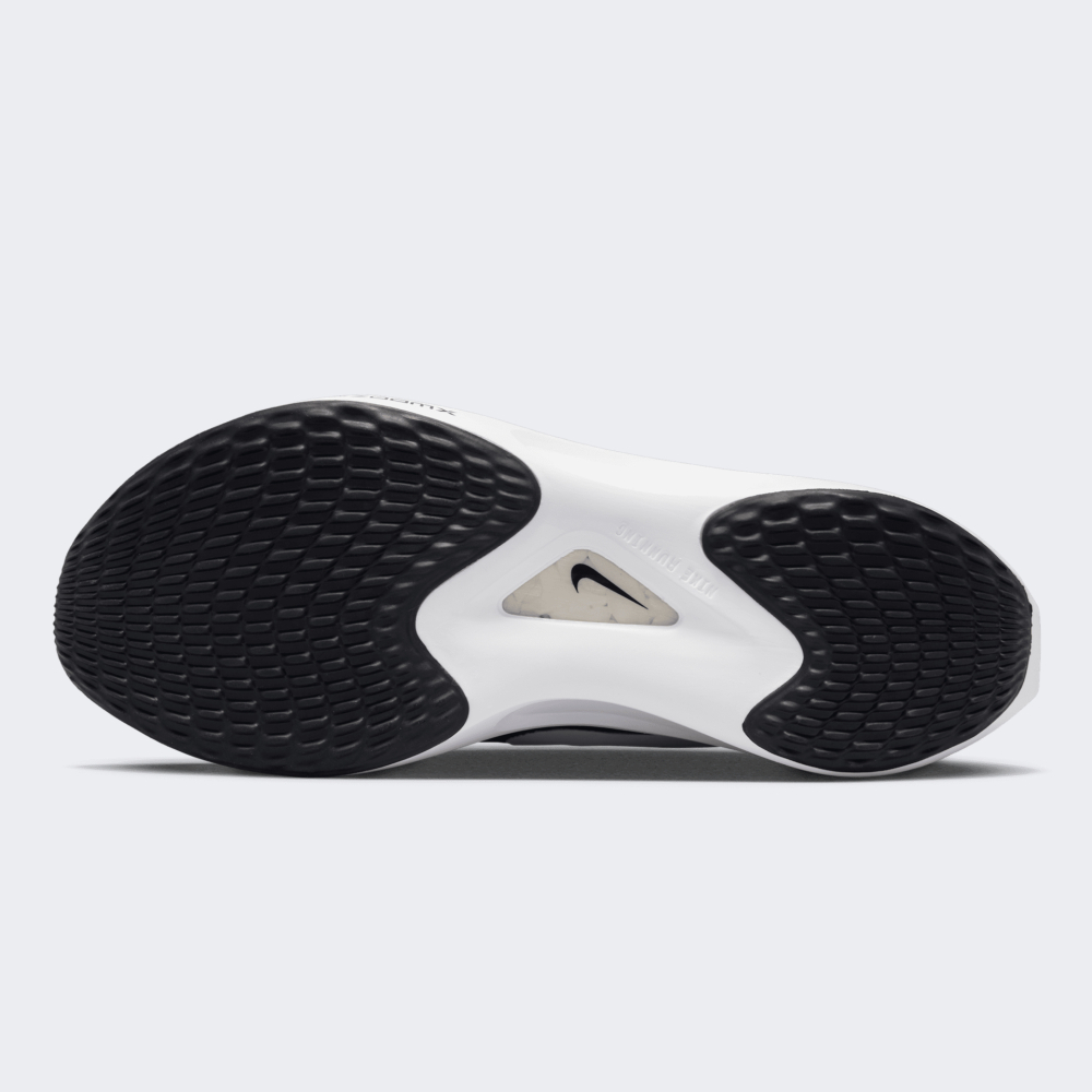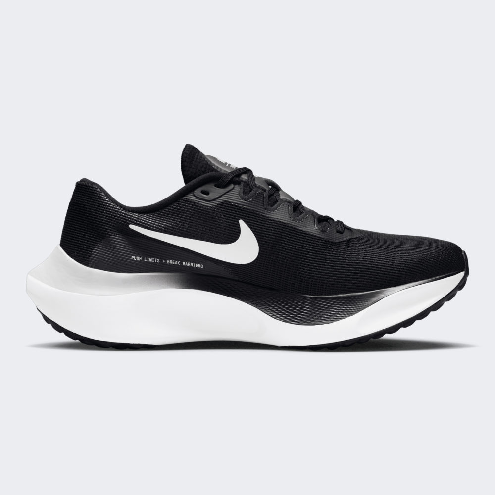 Кросівки Nike Zoom Fly 5 пропонують комфорт та надійність, але з відчуттям тяги, що допоможе Вам відчути себе швидким. Верх моделі виготовлено з легкої сітки та синтетичних накладок, що гарантуватиме відмінну повітропроникність. Пластина з вуглецевого волокна забезпечуватиме плавний перехід у різних темпах, створюючи відчуття перекату вперед та спонукаючи Вас зробити наступний крок. Передня та п'яткова частина мають трохи ширшу основу, тому Ви впевнено долатимете повороти та довгі пробіжки. Проміжна підошва гарантуватиме чутливу амортизацію, що допоможе Вам бігати швидше та легше, а також отримувати більше задоволення від пробіжок. Nike піклується про зниження впливу на довкілля, тому модель містить щонайменше 20% перероблених волокон.