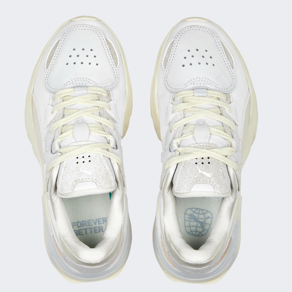 Кросівки Puma Orkid Thrifted Wns, завдяки сучасному дизайну та високій якості, стануть улюбленими для створення повсякденних образів. Верх взуття комбінований зі шкіри та синтетичного матеріалу, що дає відчуття комфорту і має підвищені експлуатаційні властивості. Перфоровані отвори відповідають за циркуляцію повітря всередині кросівка. Проміжна підошва з IMEVA робить взуття надзвичайно легким та м'яким, а основна підошва з гуми надає зносостійкості та зчеплення. Puma піклується про зниження впливу на довкілля тому верх виготовлено не менше ніж на 20%, а підошва не менше ніж на 10% з перероблених матеріалів.