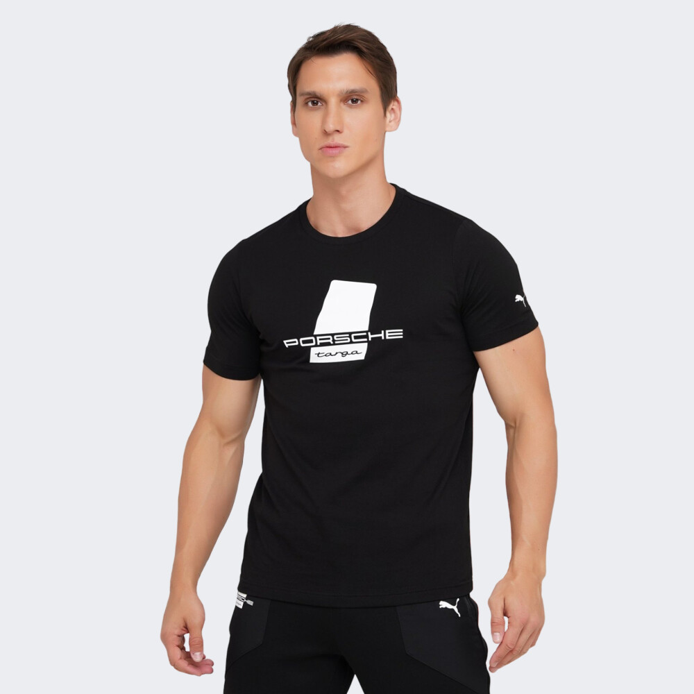 Футболка классического кроя с высоким содержанием хлопка, выполненная в черно-белых цветах. Спереди имеет принтованный логотип, подходит для ежедневной носки. На размер М длина изделия по спинке составляет 72 см.