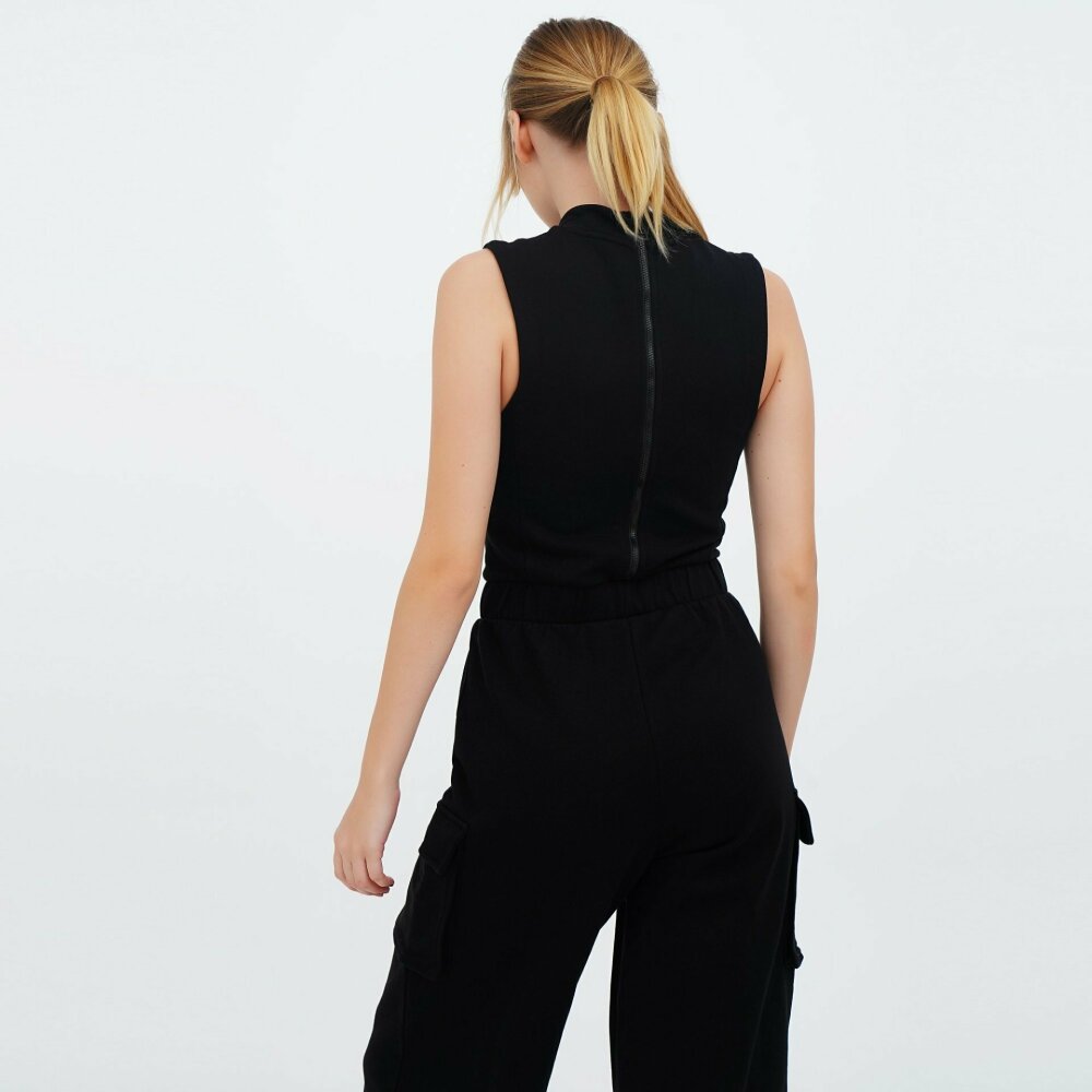 Стильний спортивний жіночий комбінезон при виготовленні якого використовуються перероблені матеріали. Це робить виріб екологічним та максимально безпечним та функціональним в носці. Комбінезон зручної посадки, застібається на блискавку, оптимально підійде для створення щоденних луків. Еластичний пояс для ідеальної посадки. Бічні кишені карго для максимальної зручності та комфорту.