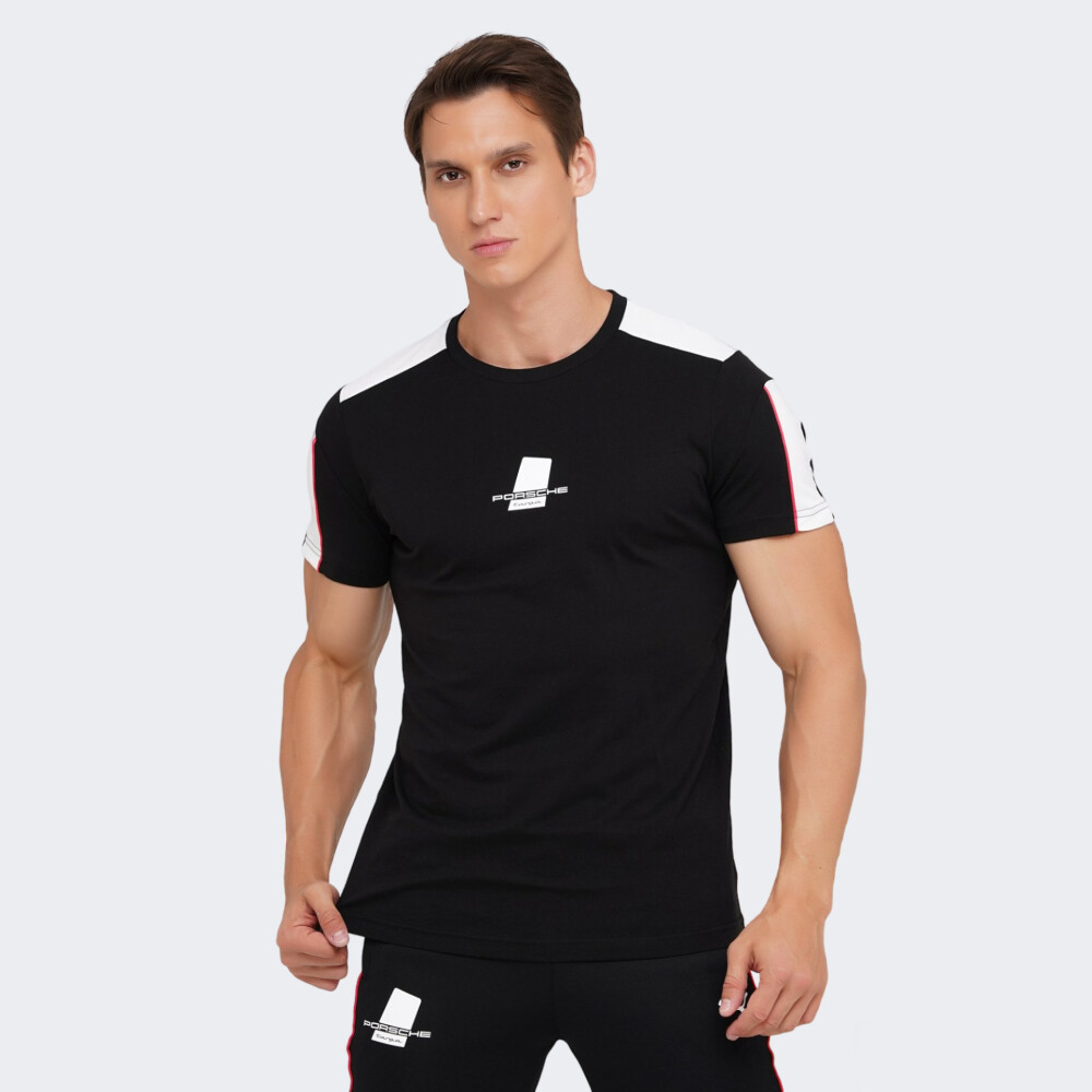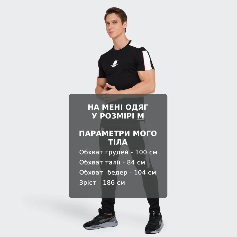 Чоловіча фірмова футболка із високим вмістом бавовни. Оптимально підійде для щоденної носки та для зайнять спортом в залі і на вулиці. Декорована принтованим логотипом. На розмір М довжина виробу становить: 74 см.