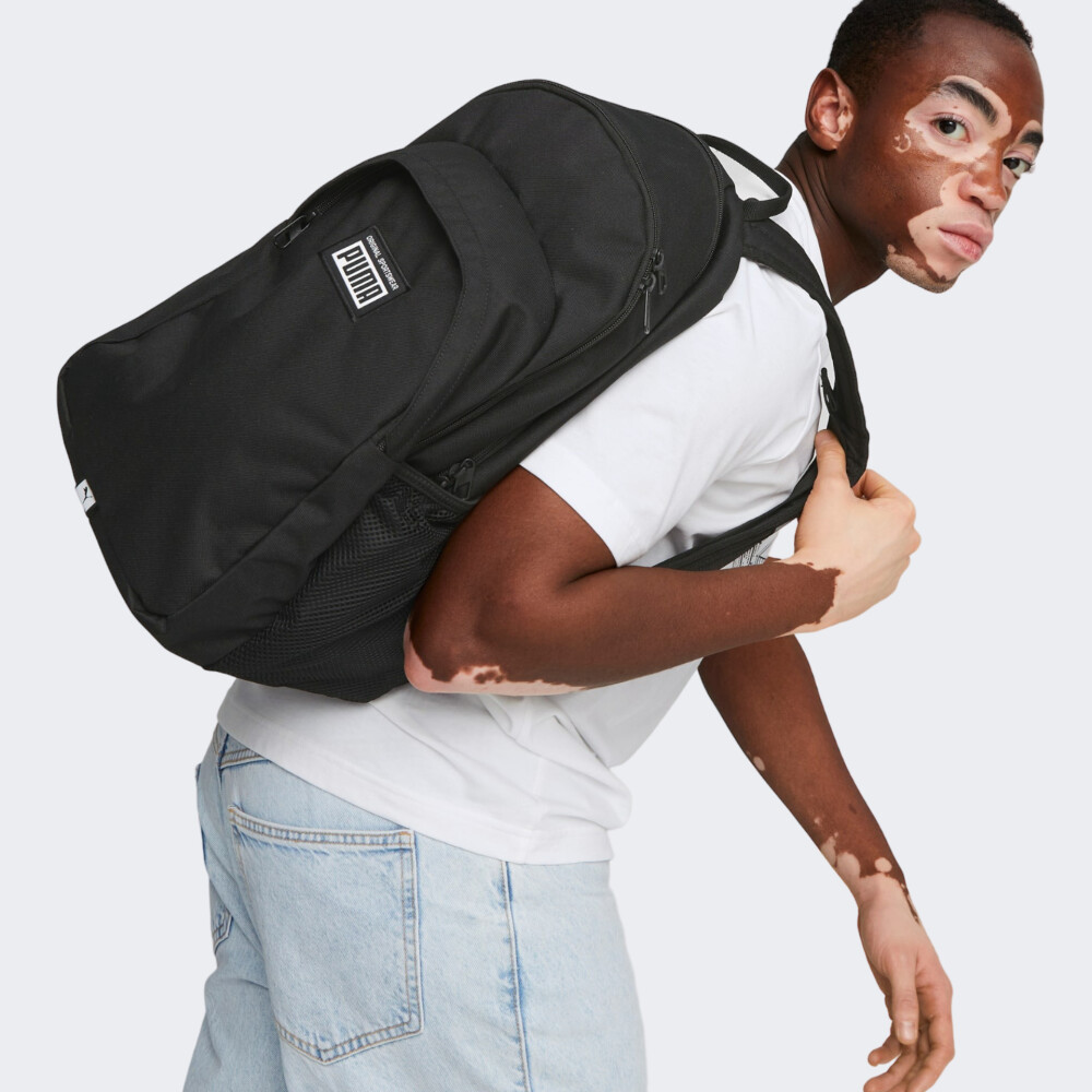 Рюкзак Puma Academy Backpack вразить Вас своєю практичністю, оскільки дає можливість впорядкувати вміст. Два відділення вмістять всі необхідні речі, а кишеня на еластичній підкладці всередині одного з них надійно фіксуватиме ноутбук та документи. Передня кишеня на блискавці необхідна для речей, які завжди мають бути в легкому доступі. Рюкзак має зручні м'які плечові лямки, які можна відрегулювати для індивідуальної посадки. Декоровано світловідбивним логотипом, який зробить Вас більш помітним в умовах низької освітленості. Puma піклується про зниження впливу на довкілля, тому матеріал виробу містить щонайменше 20% перероблених волокон. Також використано метод Dope Dye, який дає змогу знизити споживання води та електроенергії й у результаті скоротити викиди CO2, порівнюючи з традиційним процесом фарбування.